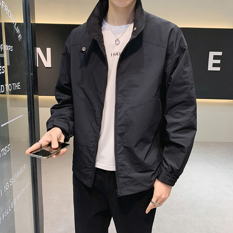 立领的设计,修饰颈部线条,衬托出男士的干练气质,时尚的撞色拼接,丰富视觉效果,彰显个性,宽松的版型,不挑身材,穿着舒适自在。