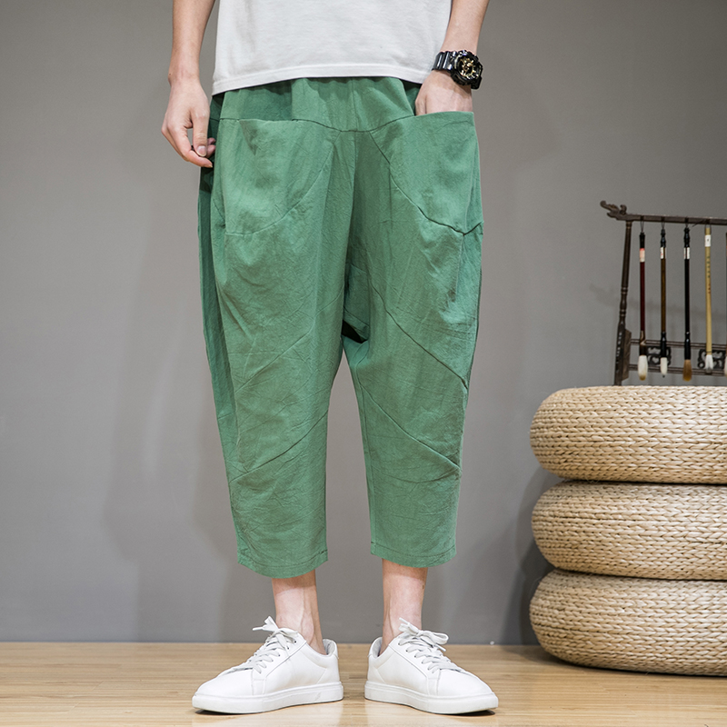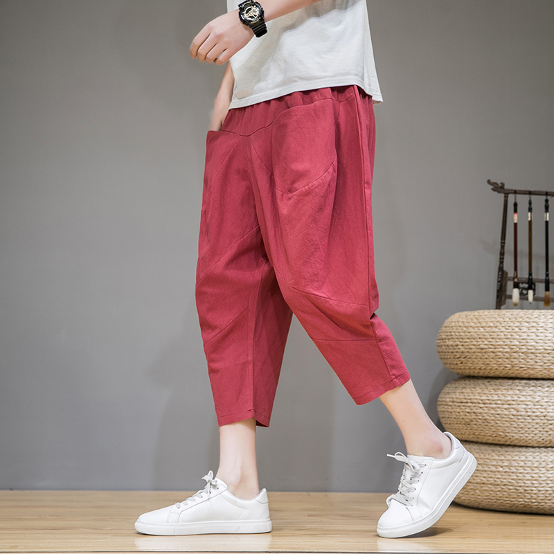 棉麻面料,穿着舒适透气。简约的款式,时尚又百搭。小脚裤型,修饰腿部线条。