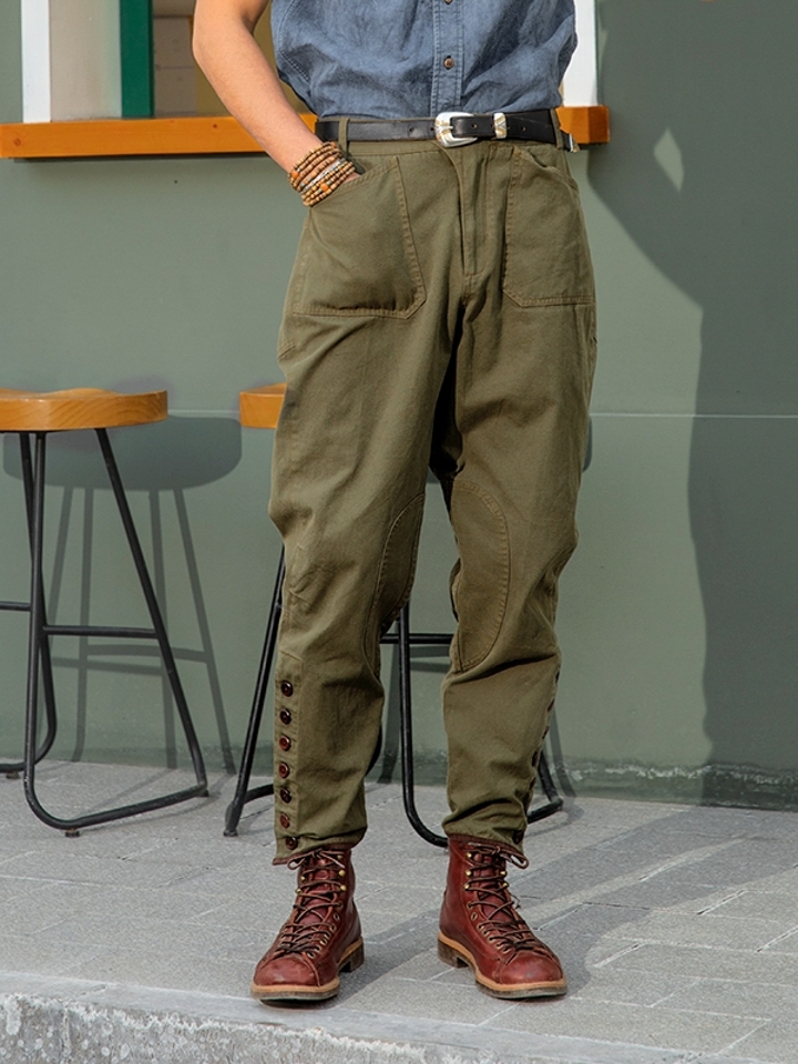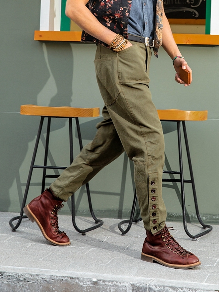 休闲裤以九分裤的版型打造,其条纹和泛做旧的处理,美式的设计格调在视觉上有着文艺的气质,将整条裤子活力彰显。