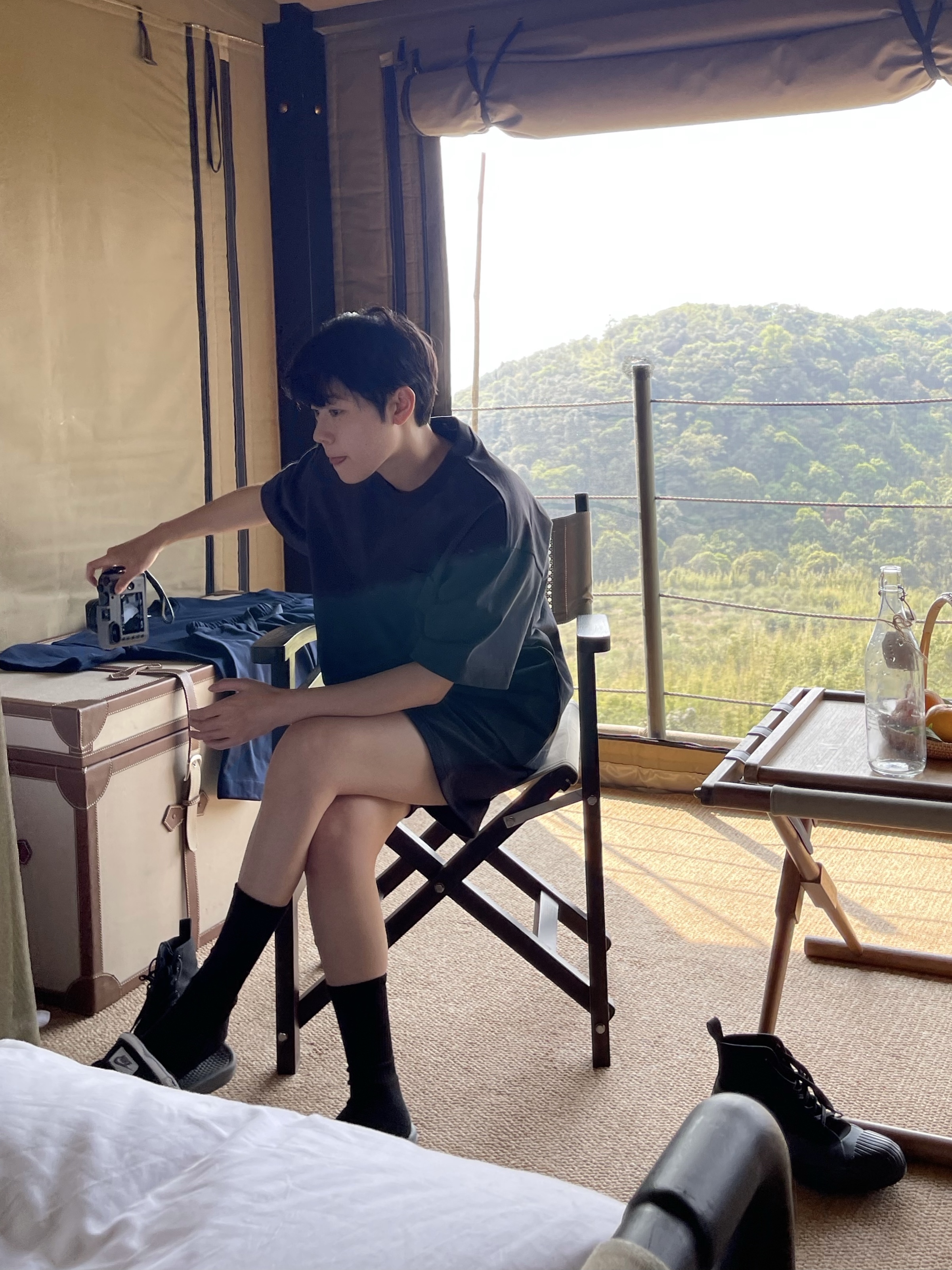 采用了经典的圆领设计,搭配上宽松的版型,穿着舒适自在,同时也能修饰腿型,让你轻松穿出时尚感。
