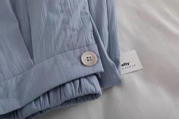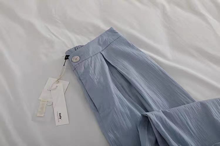 高腰的设计,拉长腿部线条,显瘦效果很好,高腰的版型,很显高挑,修身的剪裁,修饰腿部曲线,上身很有范。