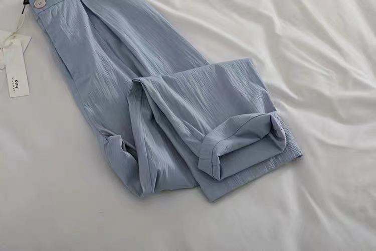 直筒的裤型,上身显瘦又显高,高腰的设计,拉长腿部线条,显高挑。
