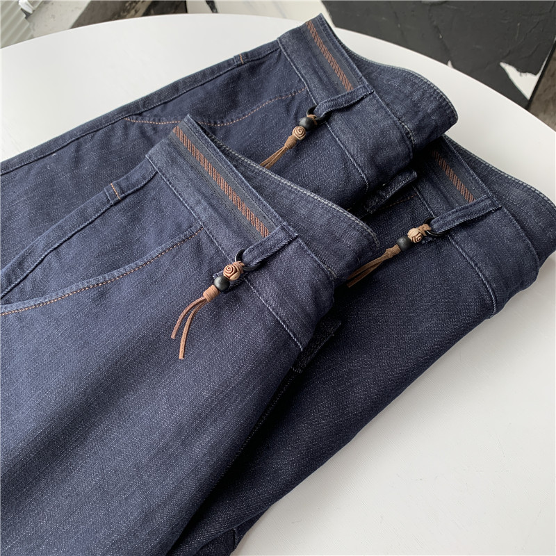 高腰设计,拉长身材比例。高腰牛仔裤,显瘦显腿长。直筒裤型,修饰腿部线条。