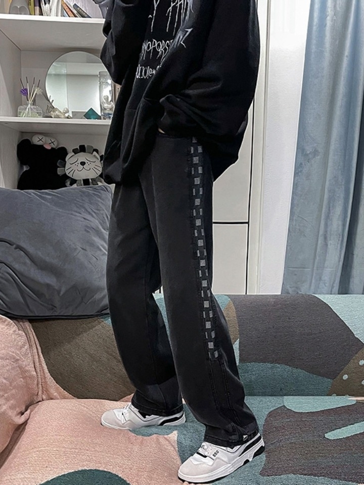 在裤腿的侧边融入了撞色印花点缀,美观吸睛,结合上拖地的款式,能够在视觉上将你的双腿修饰的更加纤长。