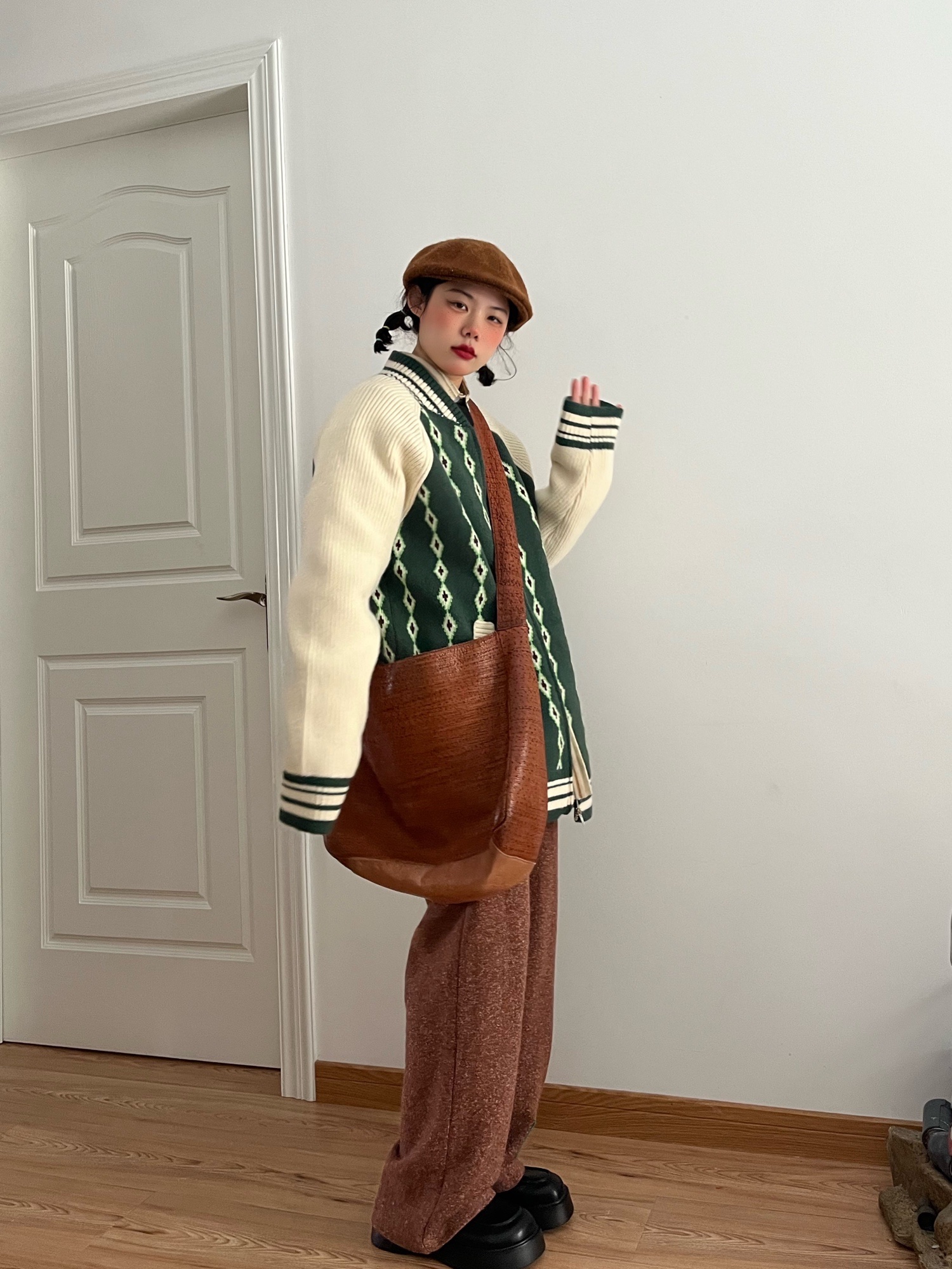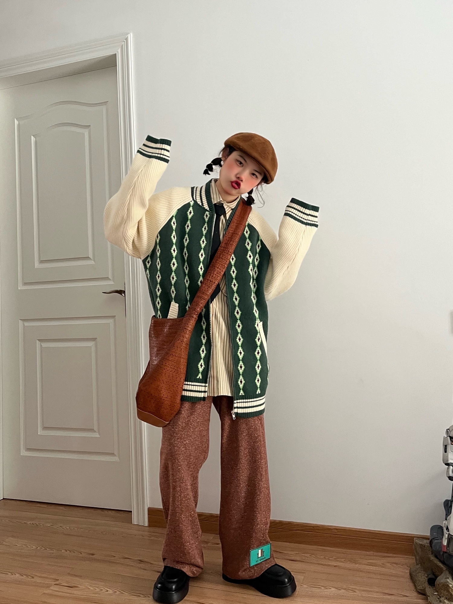 经典的开衫设计,秀气温婉,彰显出知性淡雅的淑女气质。衣身的撞色菱格设计,营造出独特醒目的视觉效果体验,流露出几分时髦个性的欧美范。
