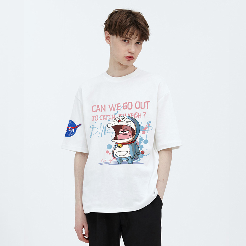 卡通印花图案,萌趣可爱。联名设计,彰显品牌魅力。宽松T恤,让你轻松驾驭。