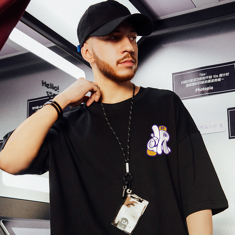 T恤采用了纯棉的面料,手感柔软,穿着舒适,透气性好,胸前的字母印花,充满了青春活力,宽松的版型,上身舒适自在,搭配牛仔裤或者短裤都很好看。