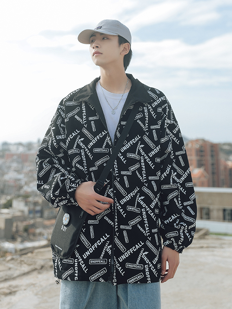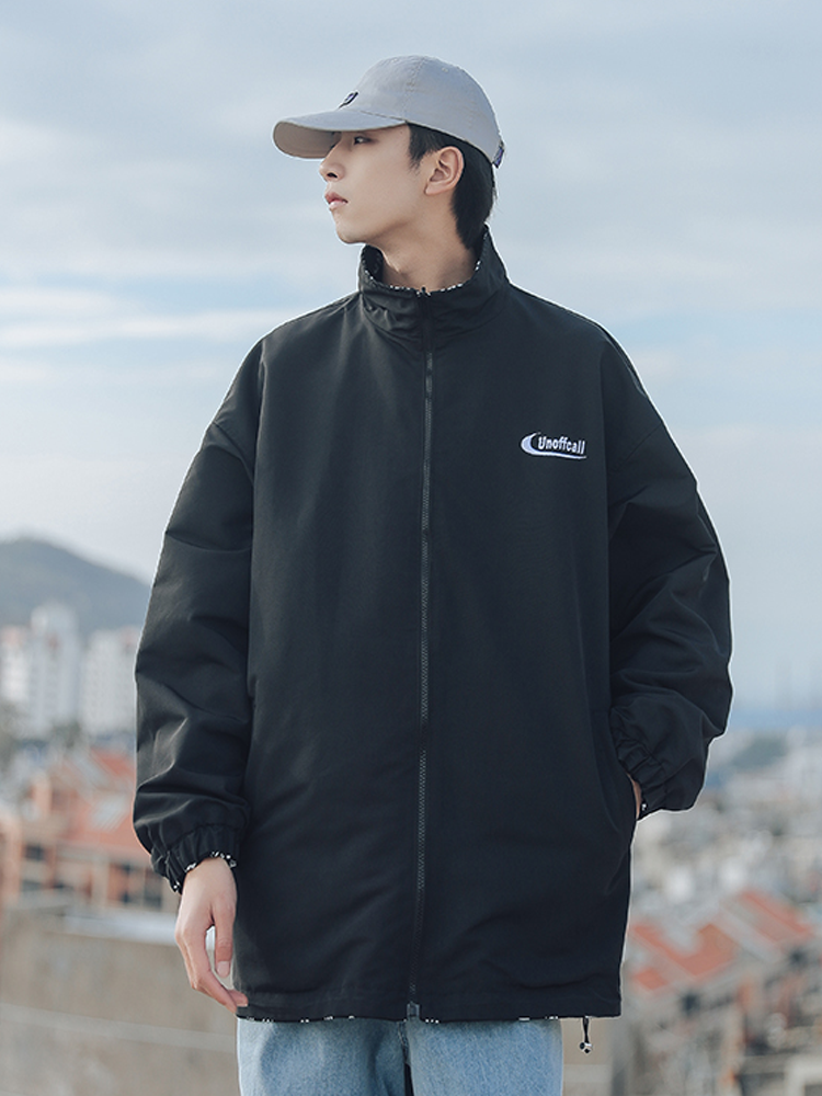 时尚的夹克设计采用的是黑色与花色两面穿,一面是黑白色,一面则是纯黑色,独特的设计感带来潮流的穿着体验。