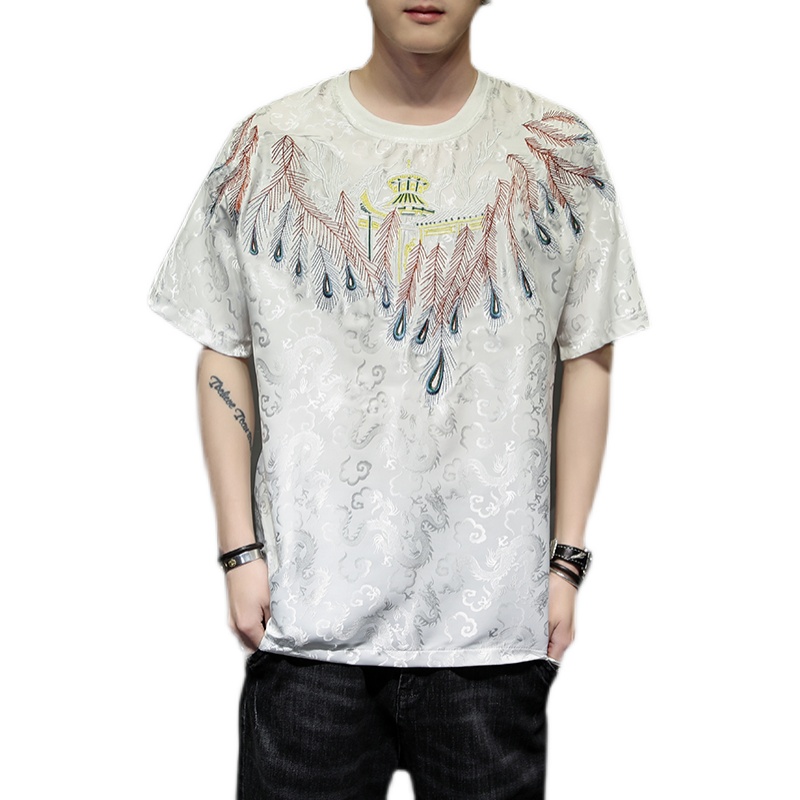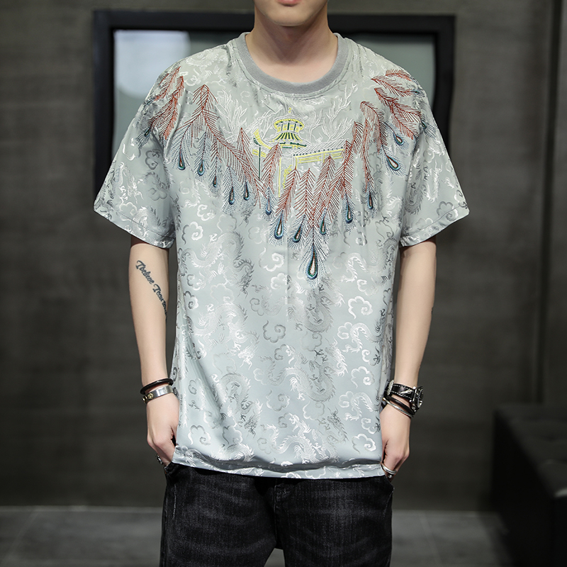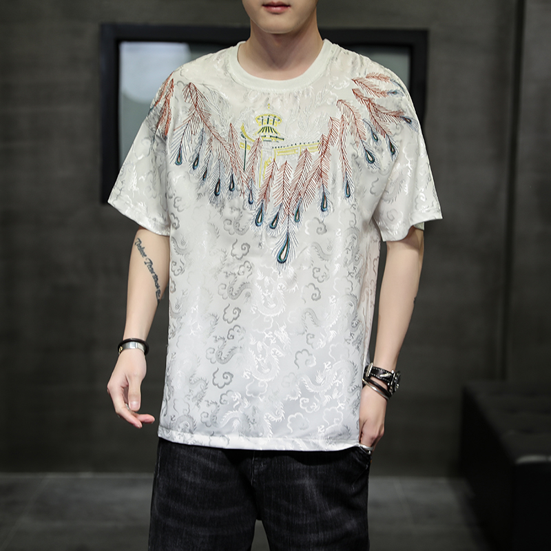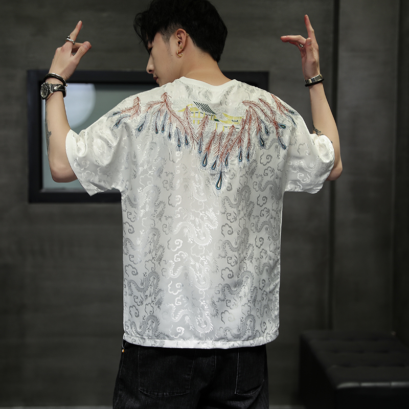 胸前的刺绣图案,充满了中国风的韵味,宽松的版型,穿着舒适自在,搭配牛仔裤或者短裤都很好看。