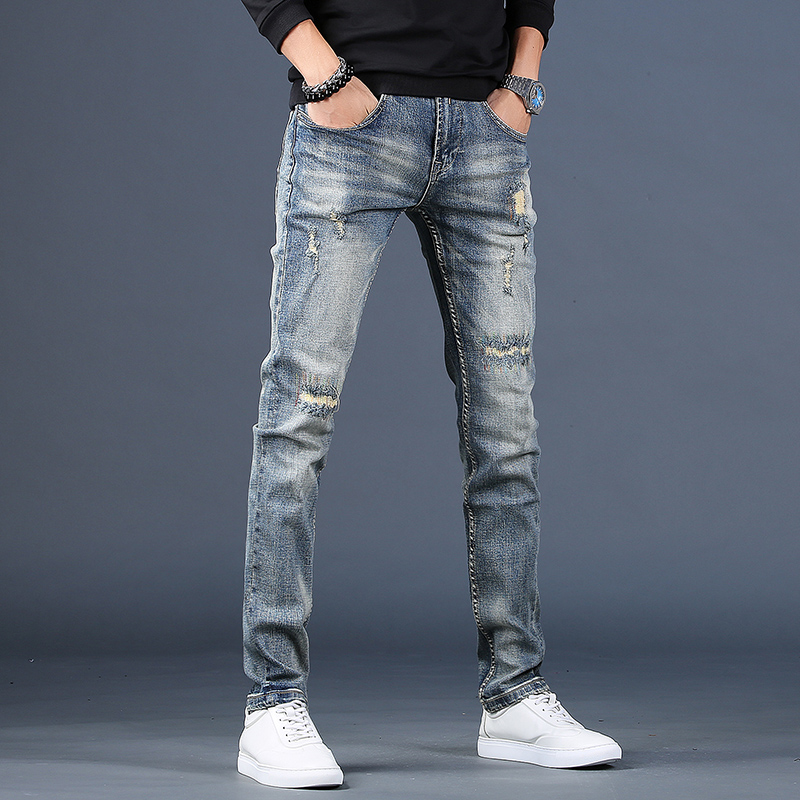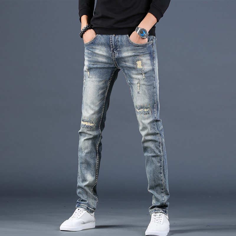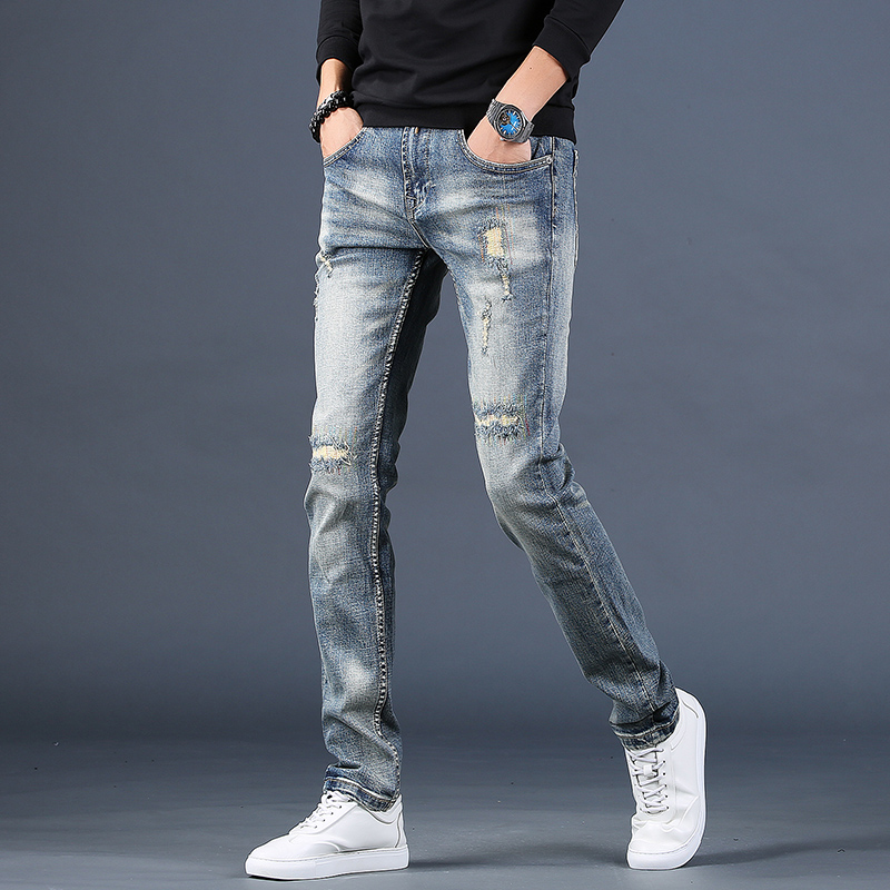 破洞牛仔裤,破洞设计,时尚潮流,修身显瘦,时尚百搭。