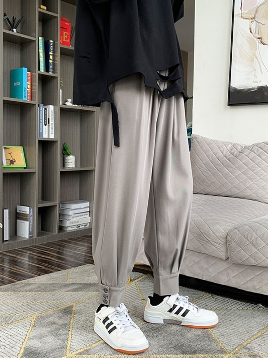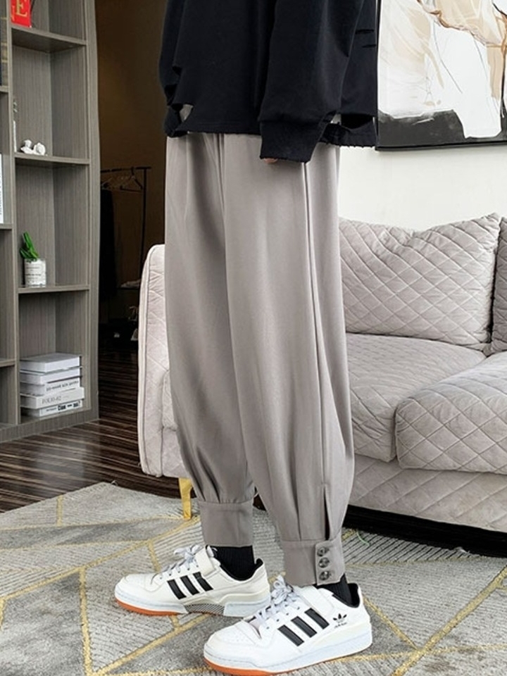 灰色的色调,比较简约大气,上身还能呈现出一抹高级感,裤身有点像哈伦的造型,修饰腿型的同时,轻松就能凹出酷酷范儿。