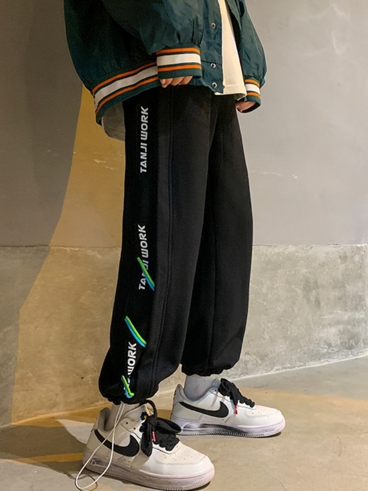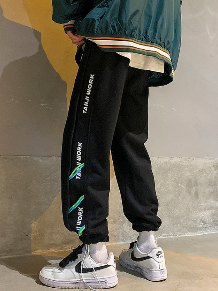 裤腿两侧撞色字母元素的融入,彰显出十足的街头感,很好的消除了单调与乏味,高腰的设计,还能提升穿着舒适度。