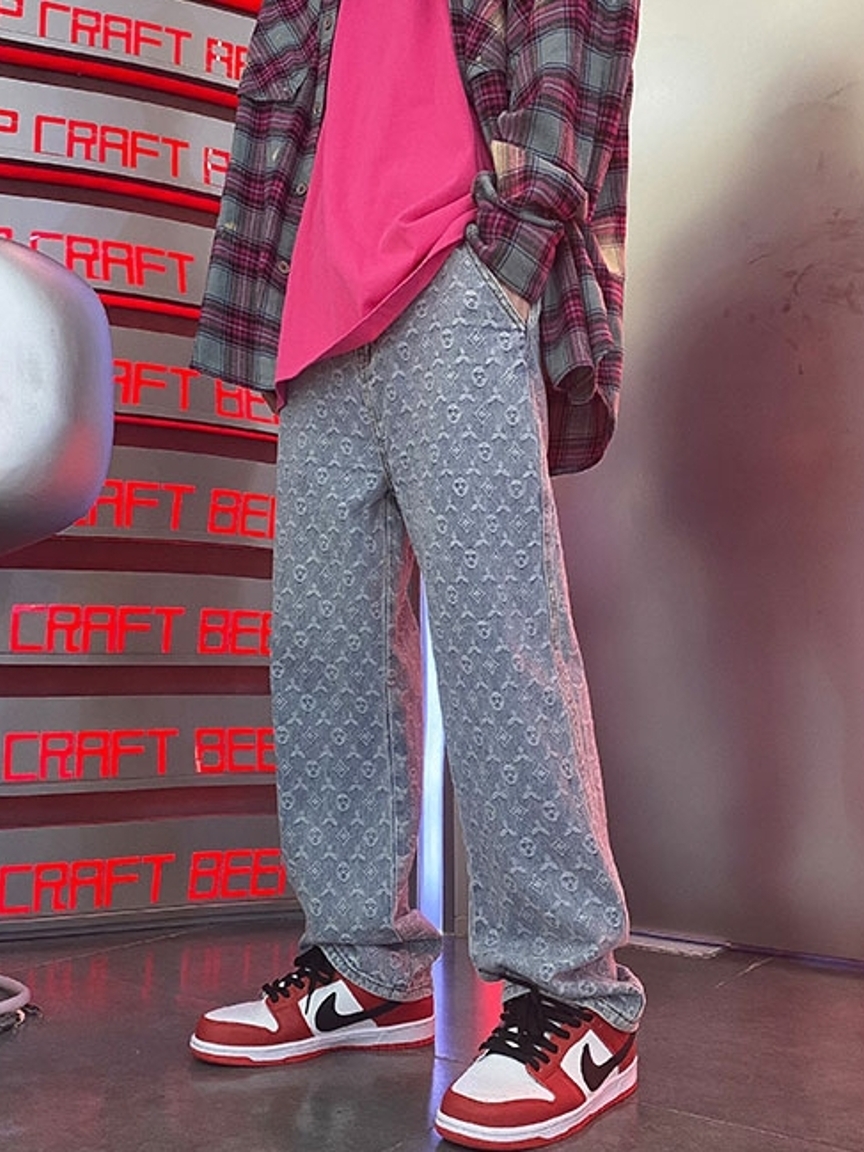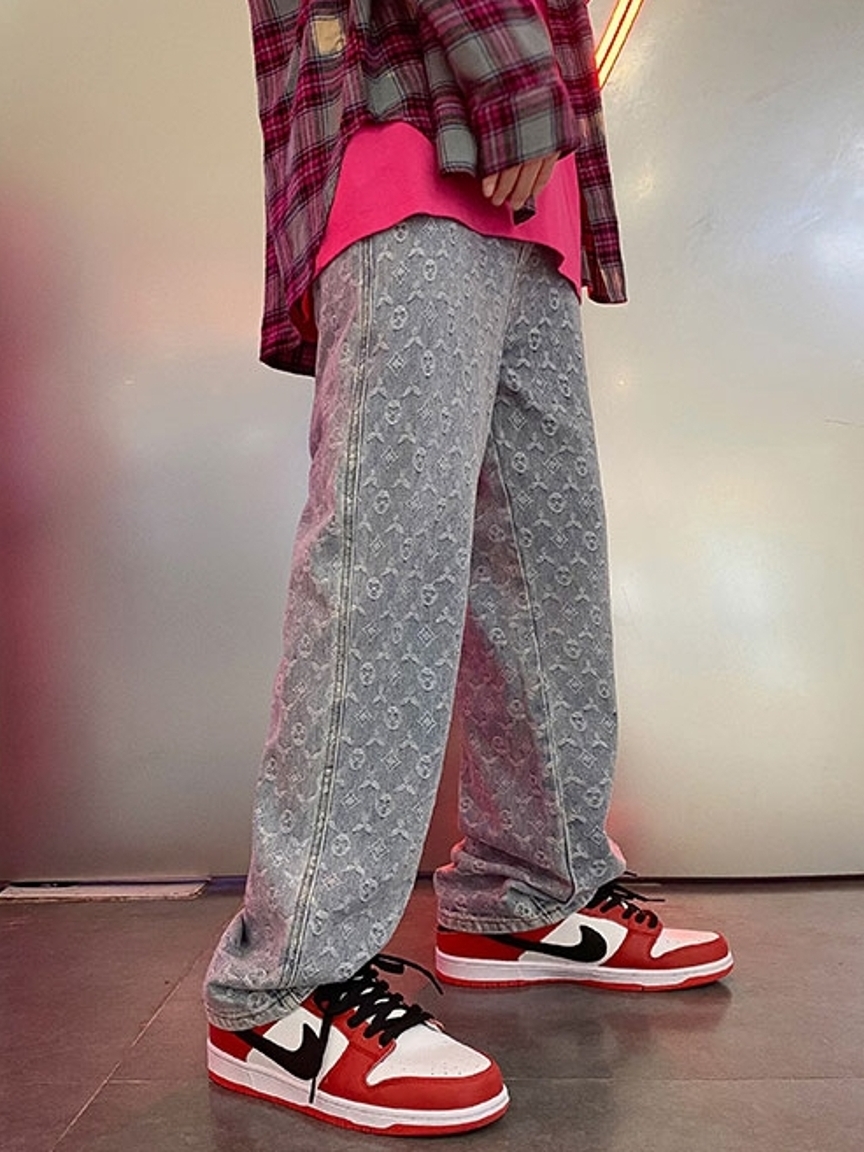 裤身采用老花的印花点缀,带来了浓郁的复古气息,口袋的设计,经典大方,实用性和美观度都能兼具。