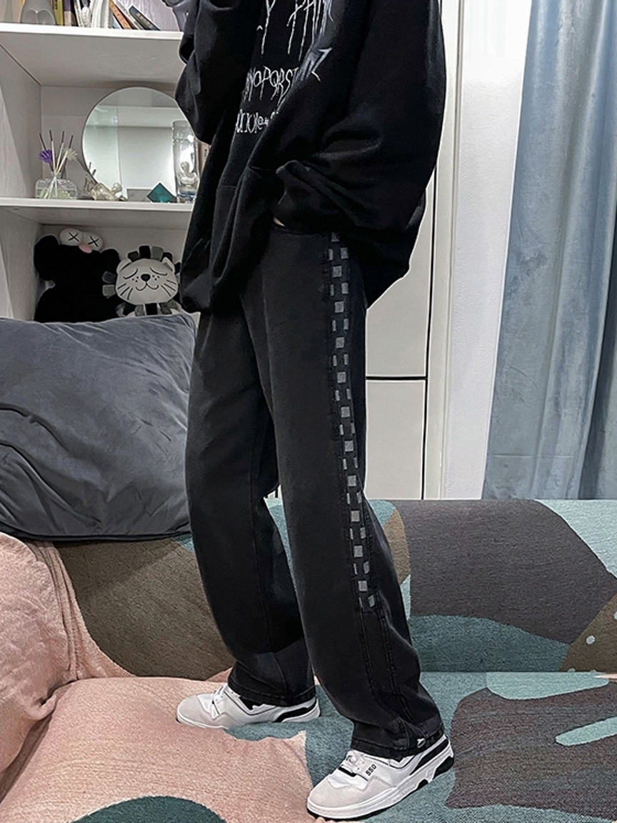 拼接撞色的棋盘格纹元素,尽显满满的层次美感和时尚潮流气息,直筒版型的裁剪,对于身材的包容性极佳哦。