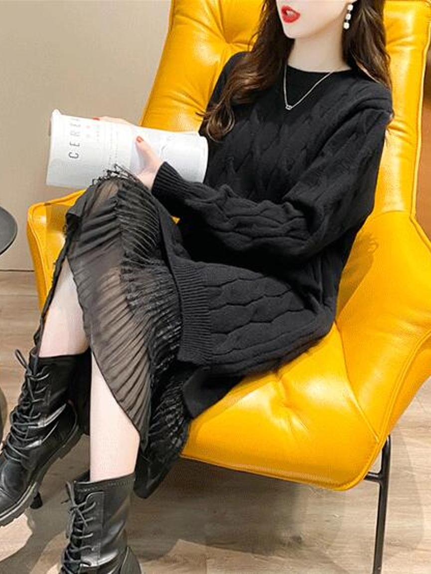 时髦girl超爱的一款针织连衣裙,裙摆采用网纱拼接,充满时尚小心机,穿上散发出十足的女人味。