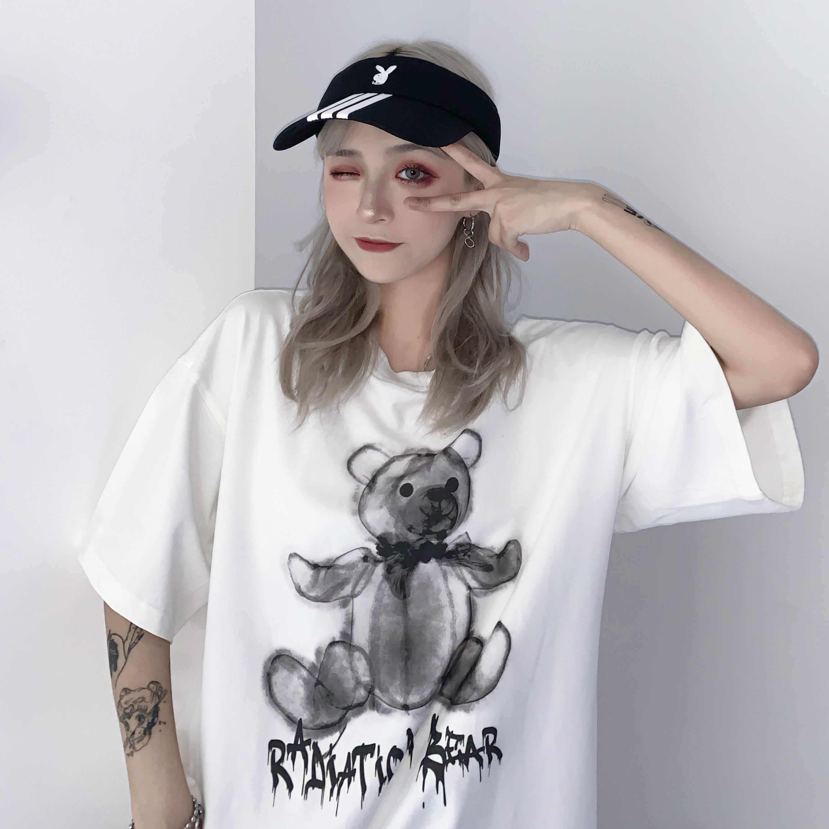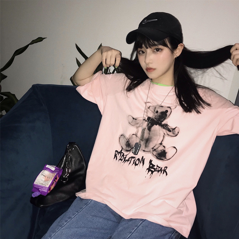 这款t恤是简约的风格,宽松的版型,时尚百搭,胸前的字母印花,很有个性,搭配牛仔裤或者短裤都很好看。