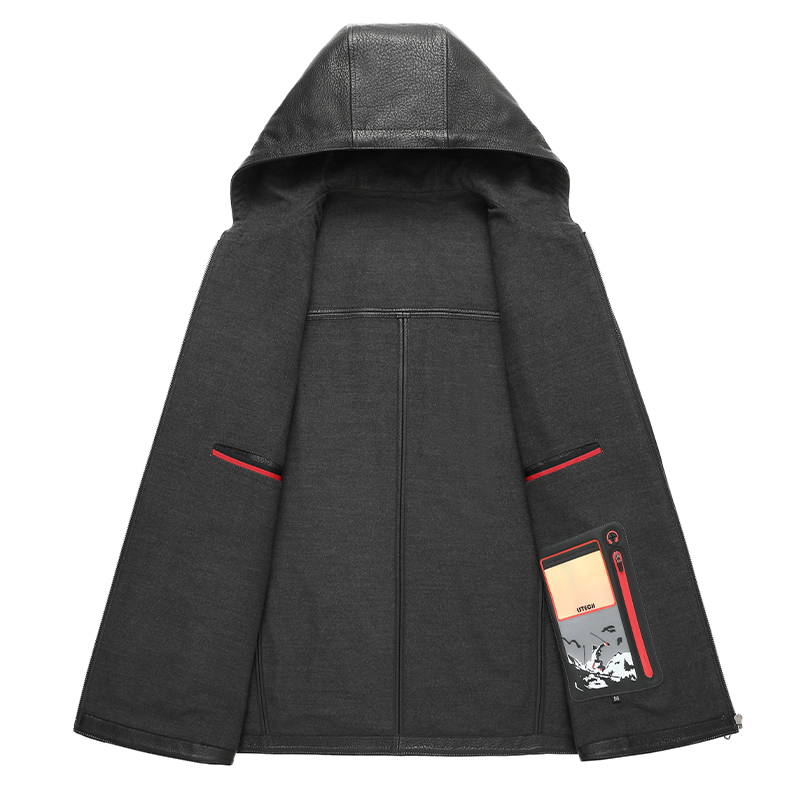 经典连帽设计,防风保暖,修身版型,凸显身材曲线,真皮材质,穿着舒适透气。