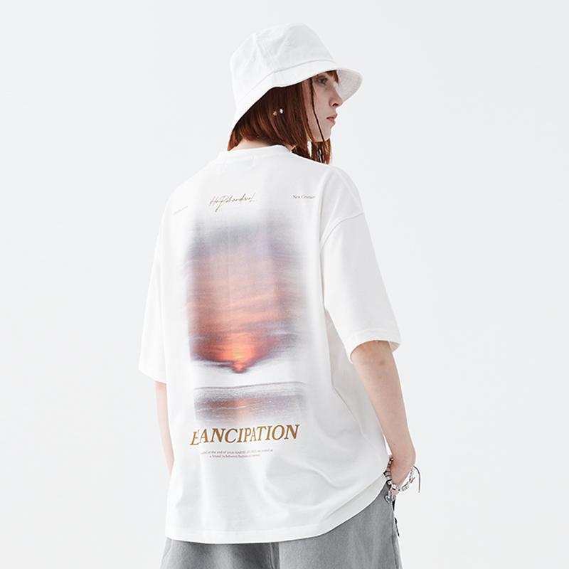 这款T恤采用了经典的圆领设计,搭配上胸前的字母印花,更显时尚感宽松的版型,穿着舒适自在。