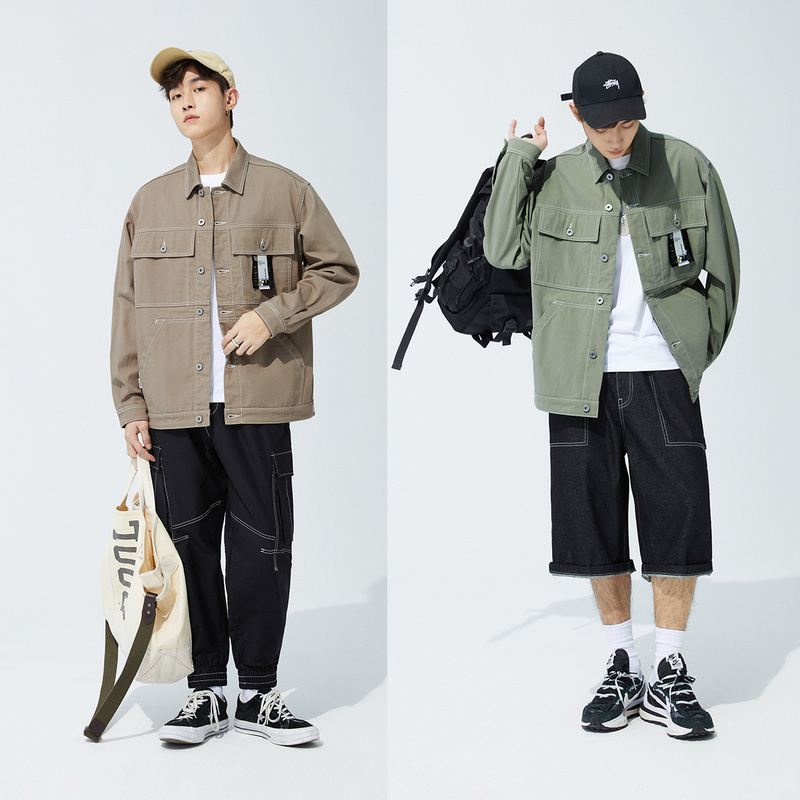 夹克采用了优质的纯棉面料,手感柔软舒适,透气性好,穿着舒适经典的翻领设计,简约大方,时尚百搭。