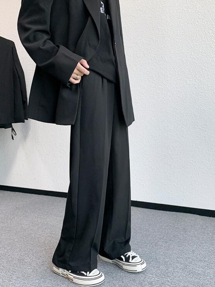 男士衣橱必备的一款休闲西装裤,宽宽的裤脚设计,上身帅气有型,还营造出一股休闲的绅士魅力。