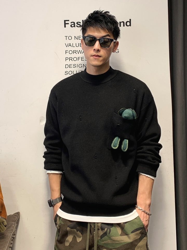 胸前的可拆卸小熊设计,不仅起到了装饰效果,还能拆下来当玩具把玩,很是解压哦,简单的圆领套头式款式,日常穿脱很方便。