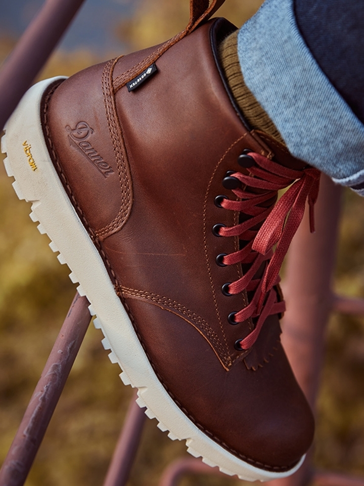 外观橡胶大底设计这款全皮防水徒步靴采用全粒面皮革制作,确保干湿地面上皆具有良好的防滑效果,提升了舒适性与耐久性,各种路面上提供防滑与减震性能。
