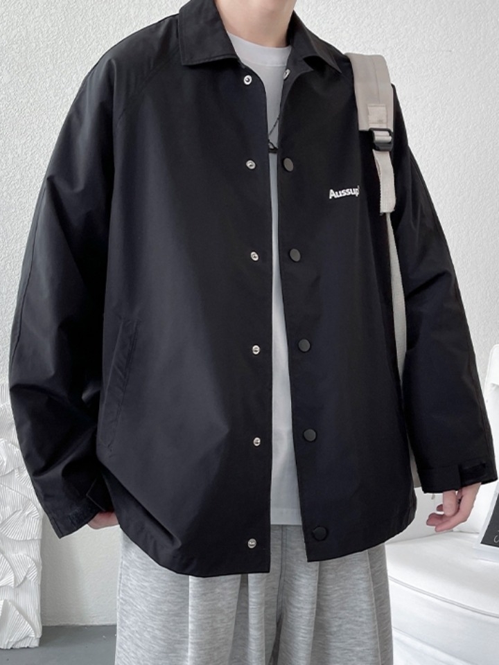 弥漫着休闲气息的一款夹克外套,值得入手,衣身以黑色调呈现,穿着既百搭,还不容易过时哦。