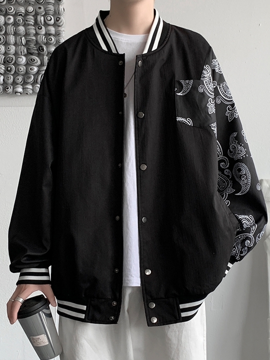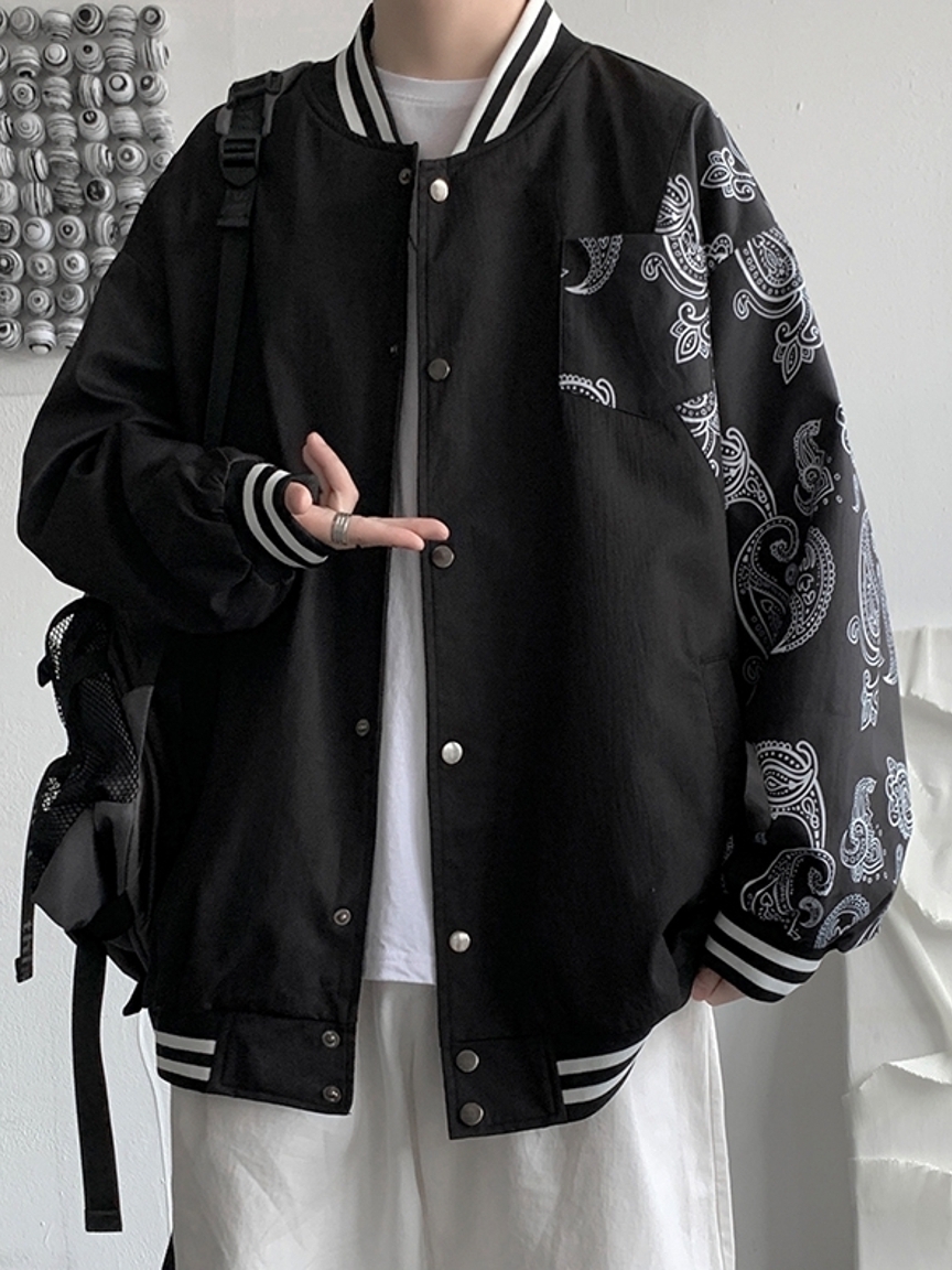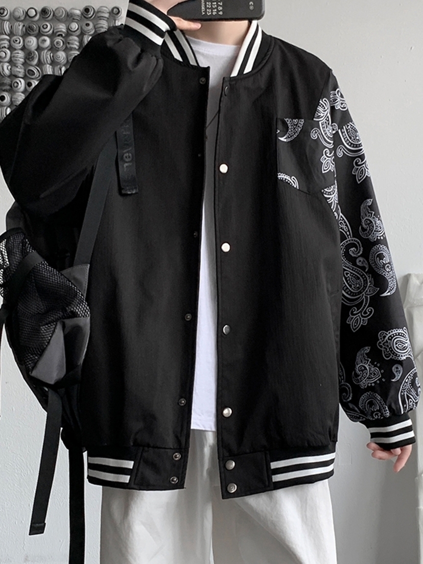 街头达人出街必备的一款棒球服,在衣身上加入了精美别致的腰果花点缀,显得个性十足,上身更为帅气。