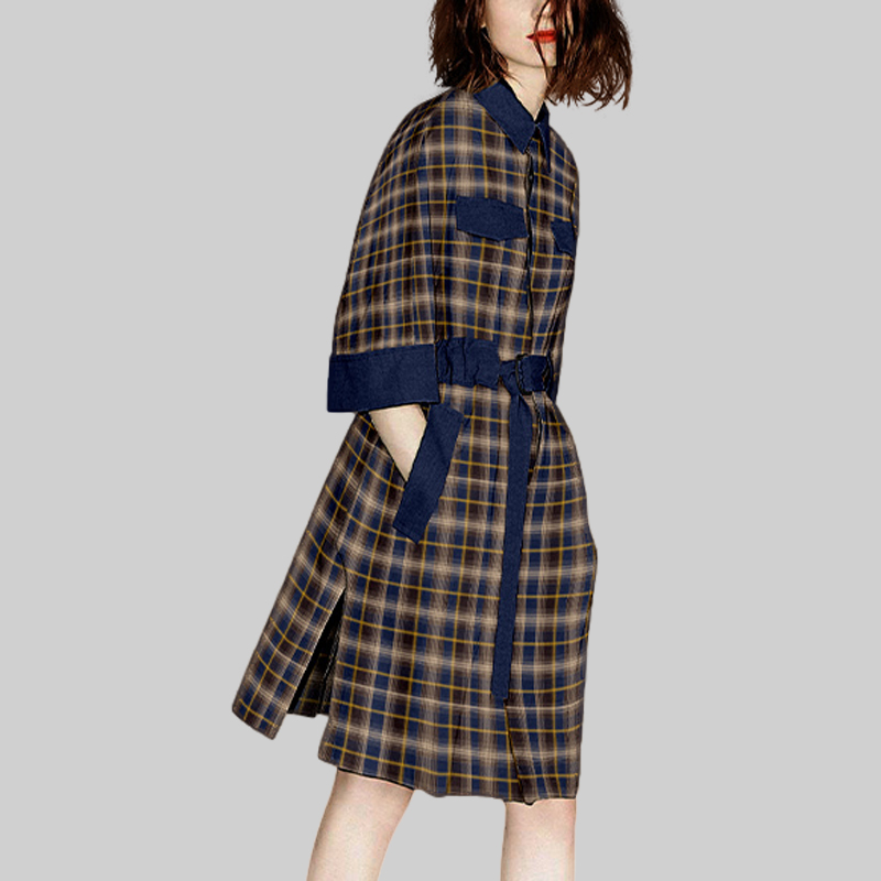 经典格子元素,复古时尚,中长款的版型,修饰身材,中长款连衣裙,修身显瘦。