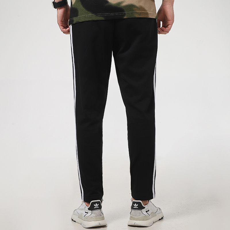 这是一款经典的条纹运动裤,经典的黑白条纹,简约大方,修身的版型设计,上身很显瘦,搭配一件T恤,很有街头范儿。