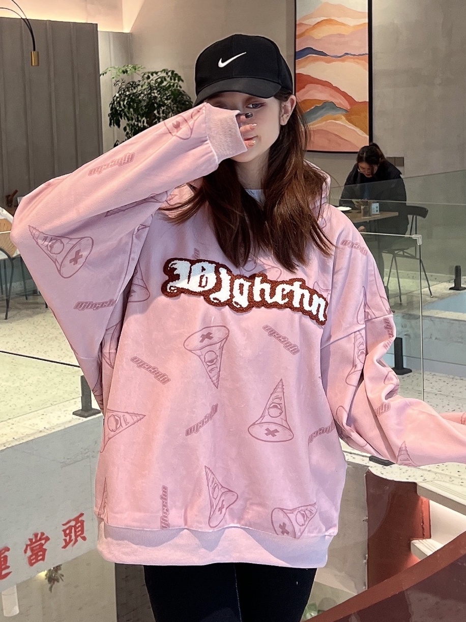 这是一款基础风格的卫衣,胸前以及后背以字母结合街头涂鸦结合刺绣,形成了丰富的视觉层次,整体版型也变得宽松了起来,包容性也是很好的。袖口和下摆均经过了防风收口处理,塑形效果也是很好。