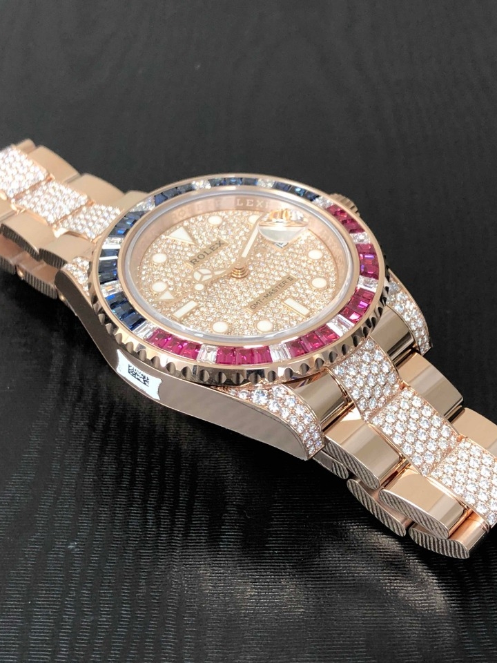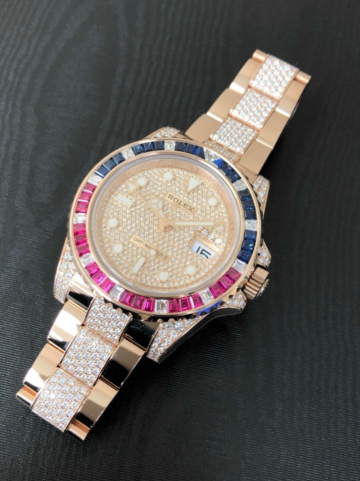 经典的劳力士机械手表,采用满钻的设计,看起来奢华感十足。表底通透,精湛的工艺,仿佛在诠释着时间的艺术。