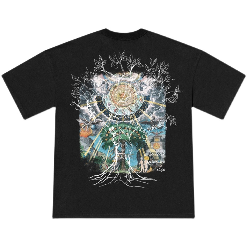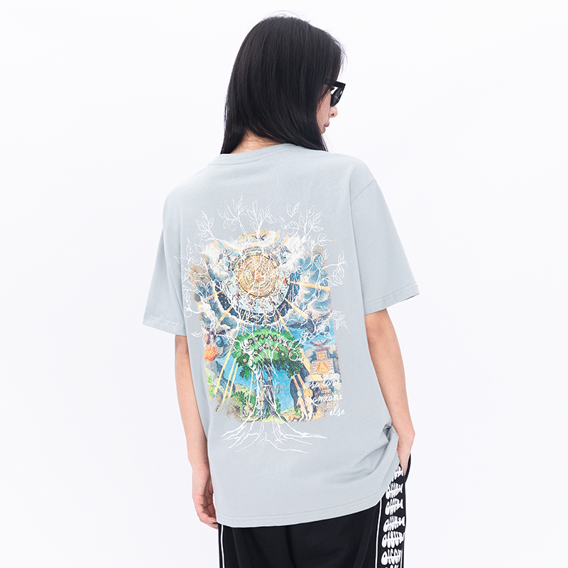 经典圆领设计,贴合颈部线条,穿着舒适,胸前的印花图案,充满了青春活力,宽松的版型,不挑身材,搭配牛仔裤或者短裤都很好看。