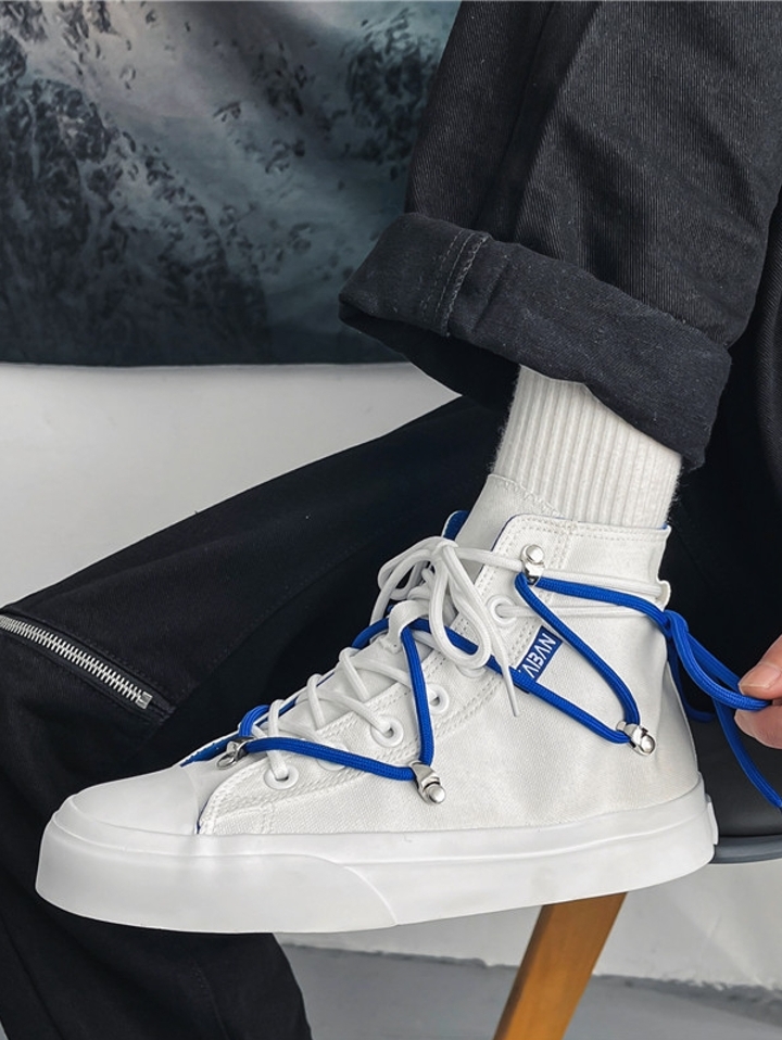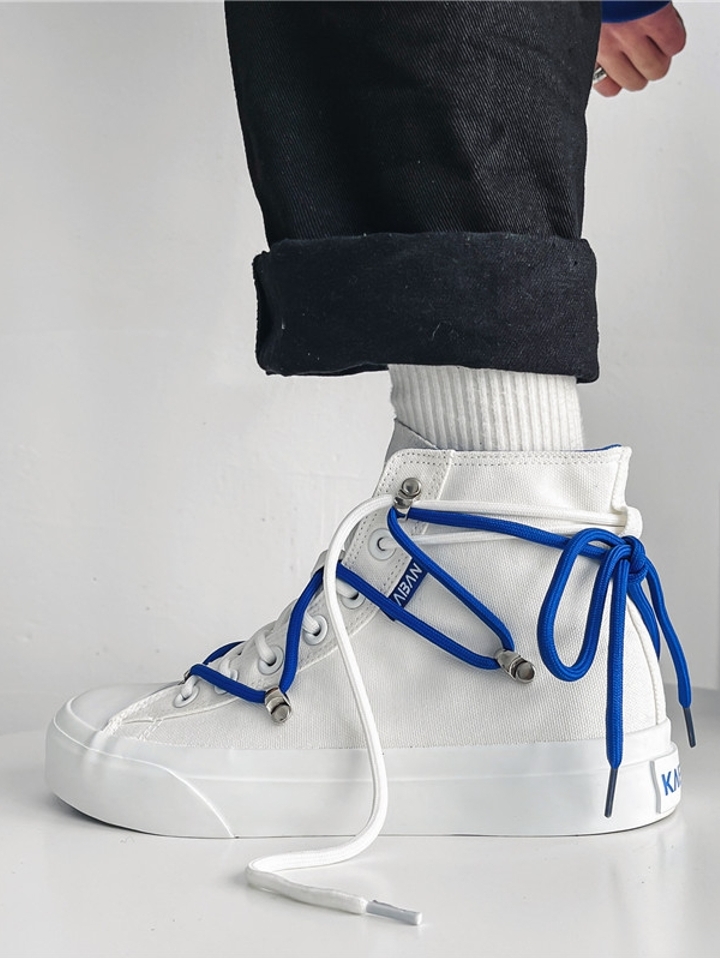 这款鞋子高帮系带款是很经典的款式,加厚的鞋底不仅柔软舒适,帆布材质也很耐穿,侧面的彩条也让这款显得活力十足。