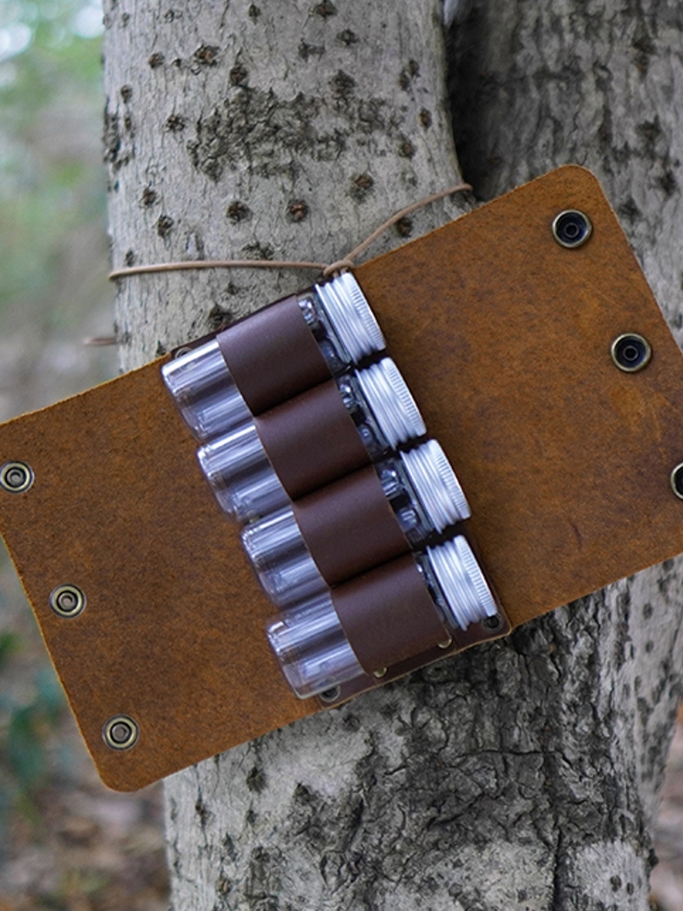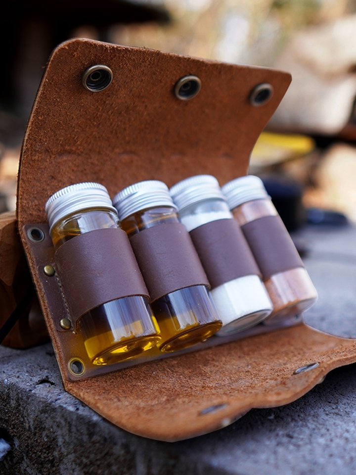 有了这款皮套调料瓶便携包,再也不怕户外携带调料瓶被磕坏了。牛皮的材质,设计了固定的皮质固定槽,既可以稳固瓶子,还可以减震防摔。