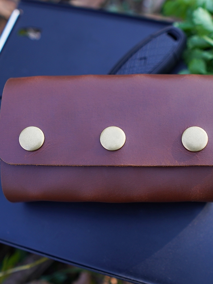 这款调料便携包采用头层牛皮材质制成,厚度在2.5毫米左右,手感光滑柔软。手推表皮会产生变色效果,会随着时间和使用变得越来越有质感。
