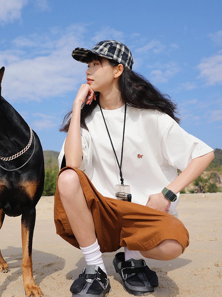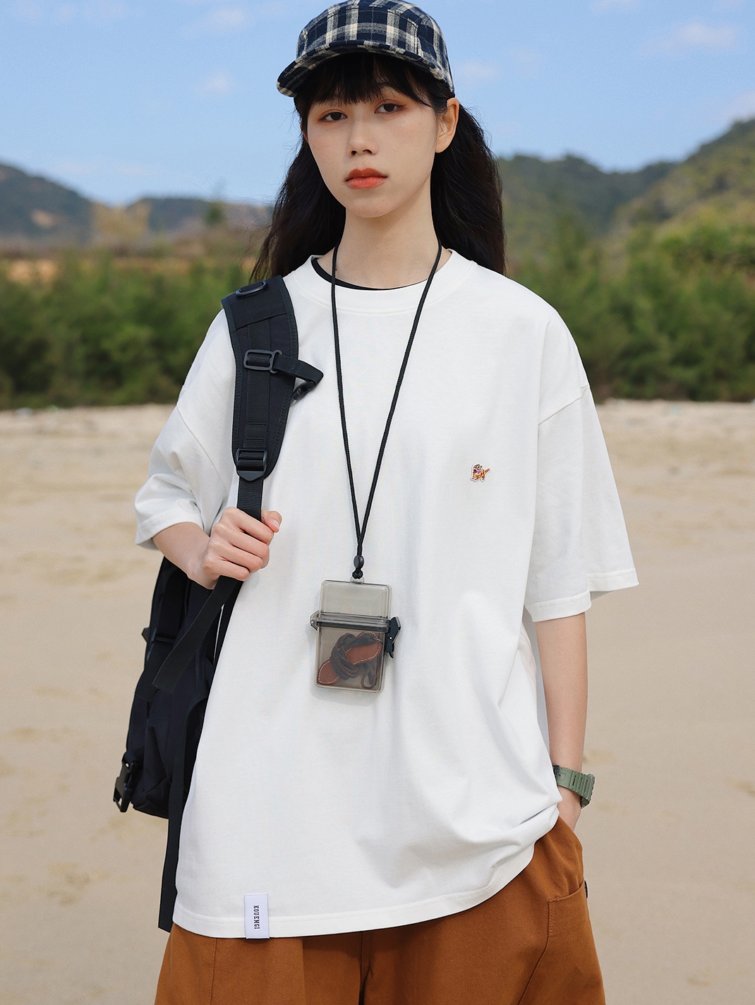 这是一款简约大方又不失时尚感的纯色t恤,也是每个时尚潮流达人衣柜必不可少的衣服。这款纯棉面料的t恤,简单宽松的版型,穿在身上就是一件很舒适很贴身的衣服。精制的面料,更是让这款短袖t恤具备了极高的性价比。选用纯棉面料制作,亲肤舒适又不会觉得扎人,纯色t恤怎