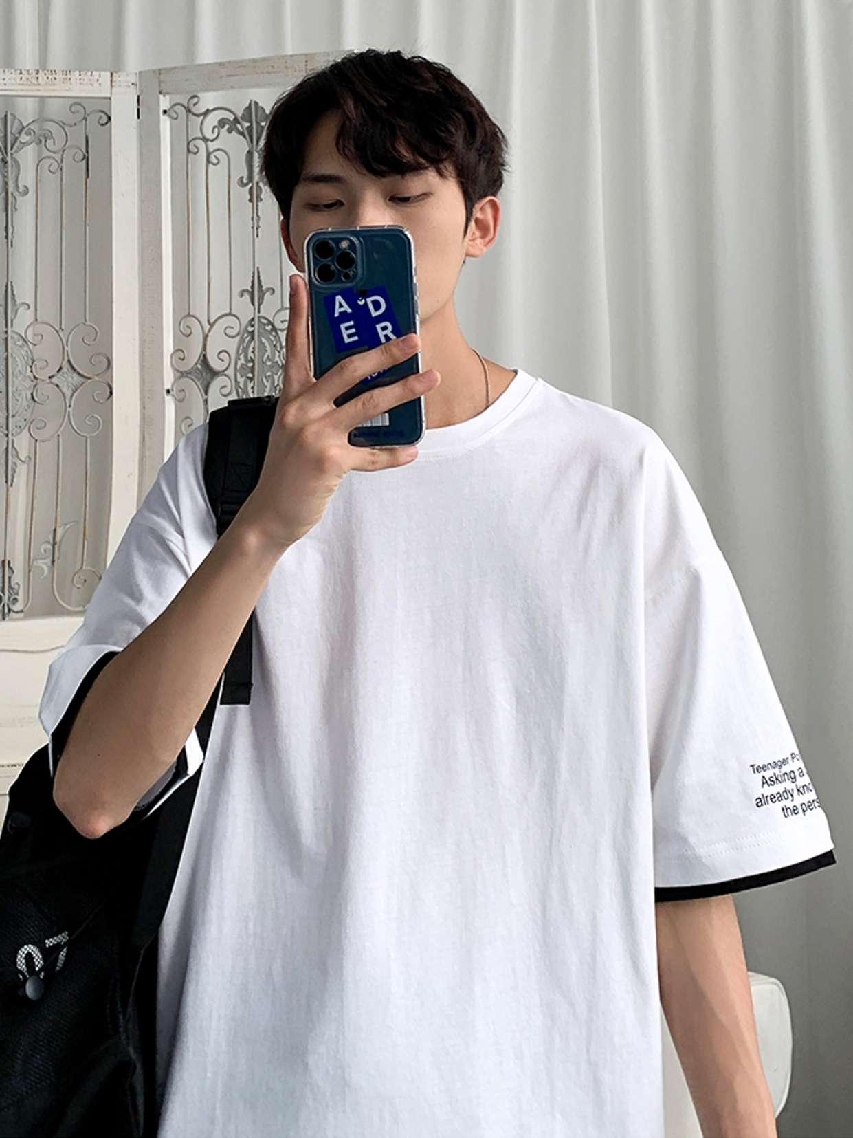 穿着挺括有型。胸前口袋印花设计,给人一种无限的遐想,打破衣身的沉闷感。纯棉质地,手感柔韧,穿着舒适透气。