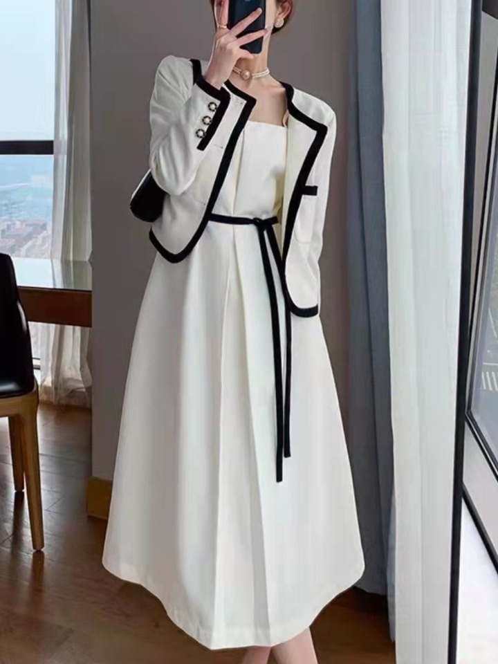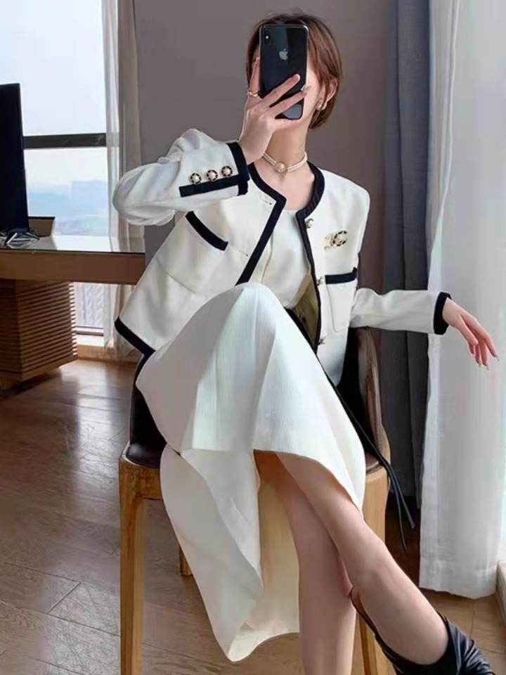 小香风的套装,吊带裙与外套组合,一套上身就能让你轻松hold住所有的场合,还显得超有名媛气质哦。
