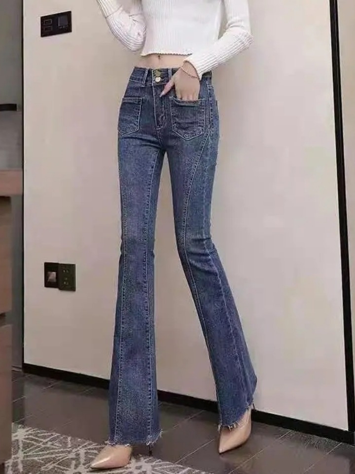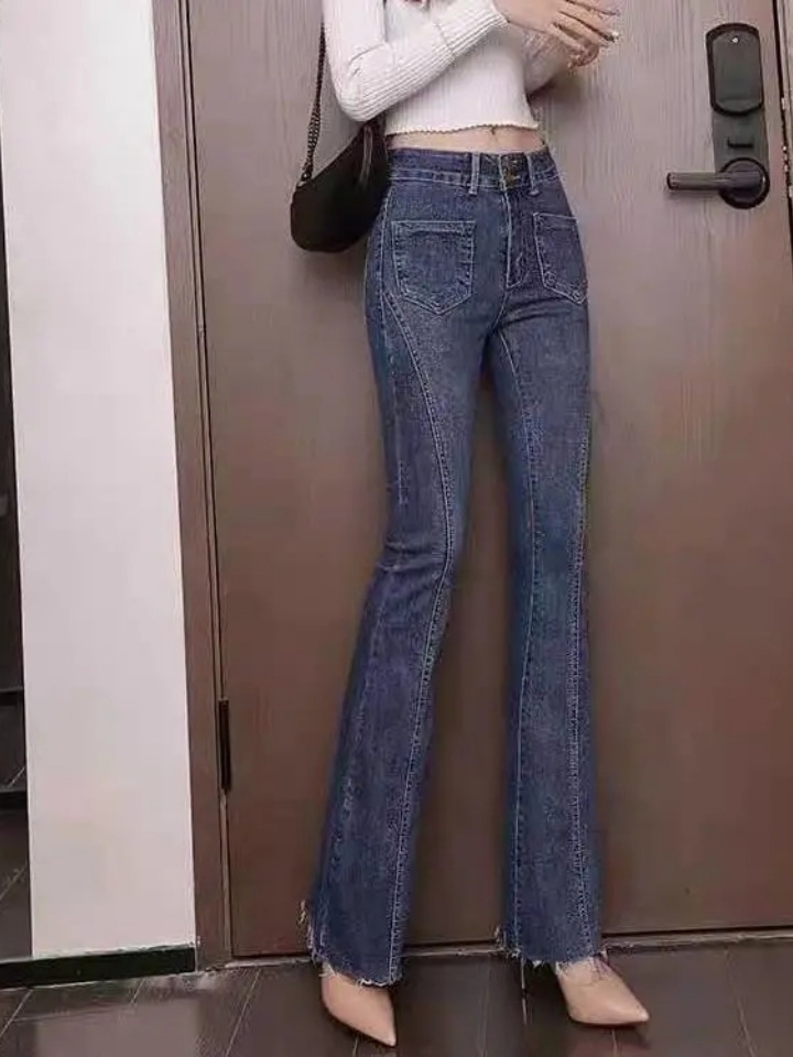 腰头有金属环装饰,时尚又不挑人,特别能包住腰间的肉肉,高腰的设计巧妙的拉长腿部线条,加上喇叭裤脚设计,尽显高挑身材,柔软的面料着身弹力十足,没有束缚感。