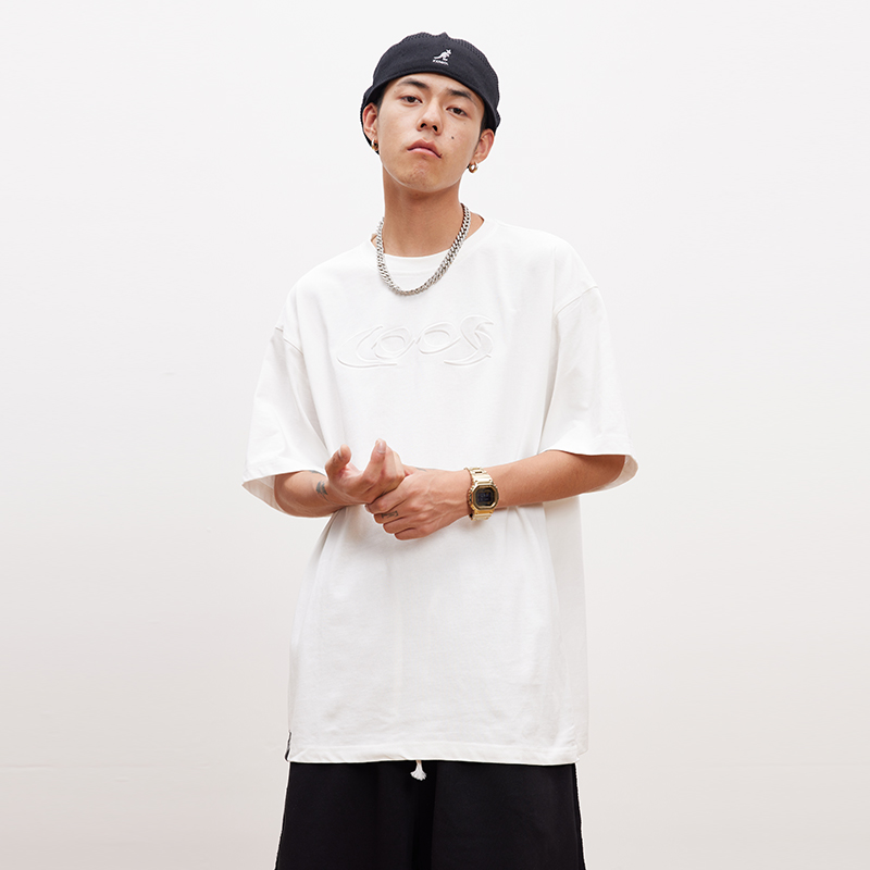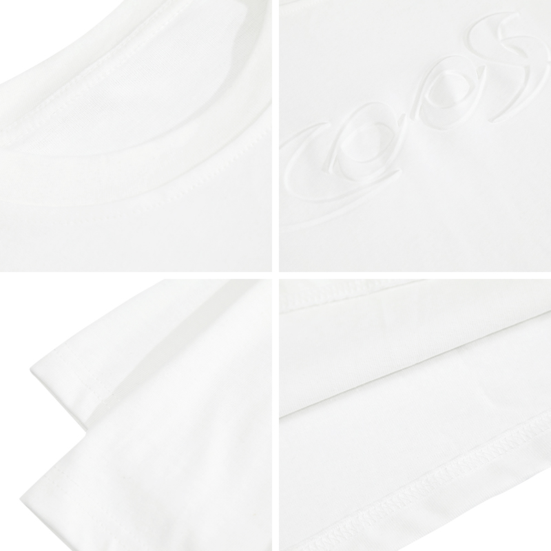 经典的圆领设计,衬托精致的脸型,宽松的版型,穿着舒适自在,衣身的字母印花,丰富视觉效果,彰显个性。