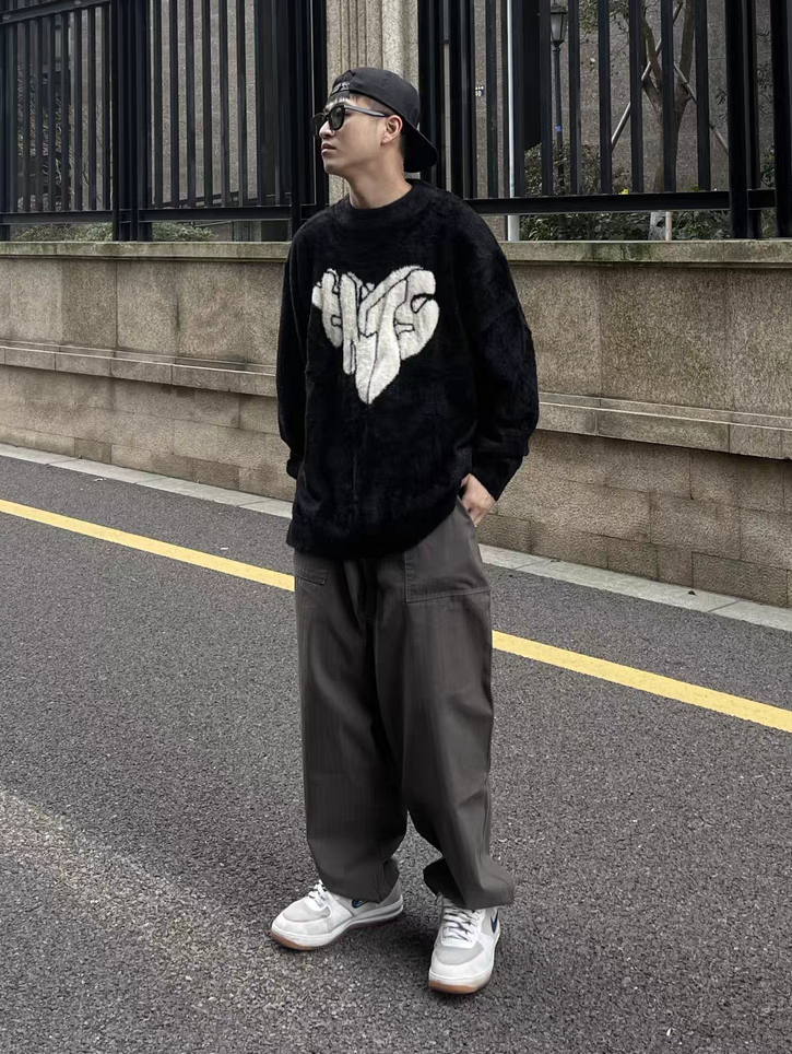 仿貂毛质感的毛衣,毛质蓬松柔软,上身保暖舒适,简约的纯色搭配提花爱心设计,干净耐看,宽松的版型,彰显慵懒气质。