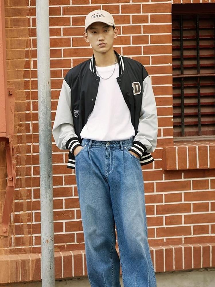 外套门为拉链棉质面料柔软舒适版型宽松增添了时尚度侧边有袋带给你的复古学院风,立领外套的英文刺绣精致美观,袖上的条纹拼接让你轻松演绎中性美,方便实用。