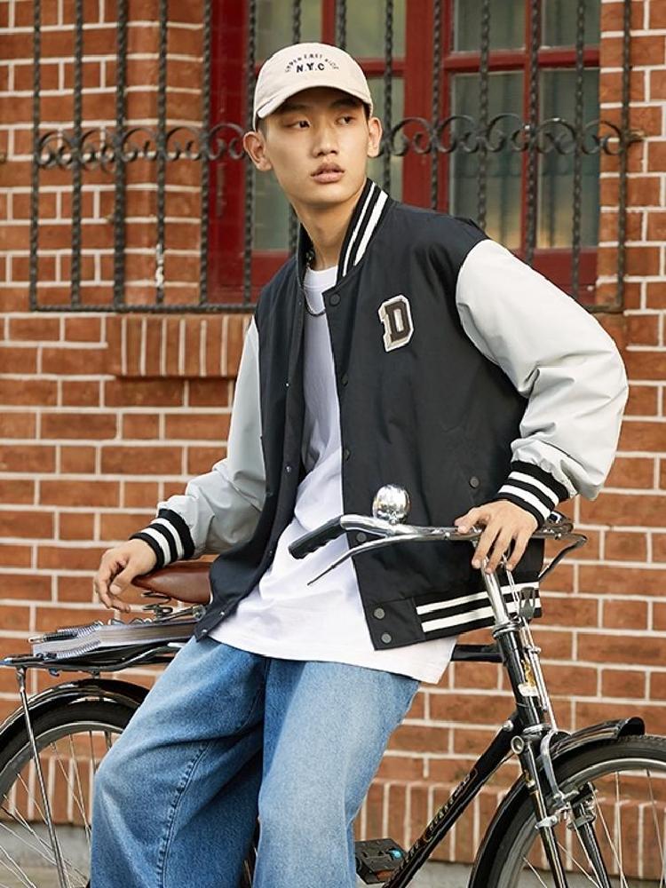 条纹的经典棒球服隐隐有着的气息帅气的立领与的黑撞,棒球服的运动属性让你变得加阳光动感。