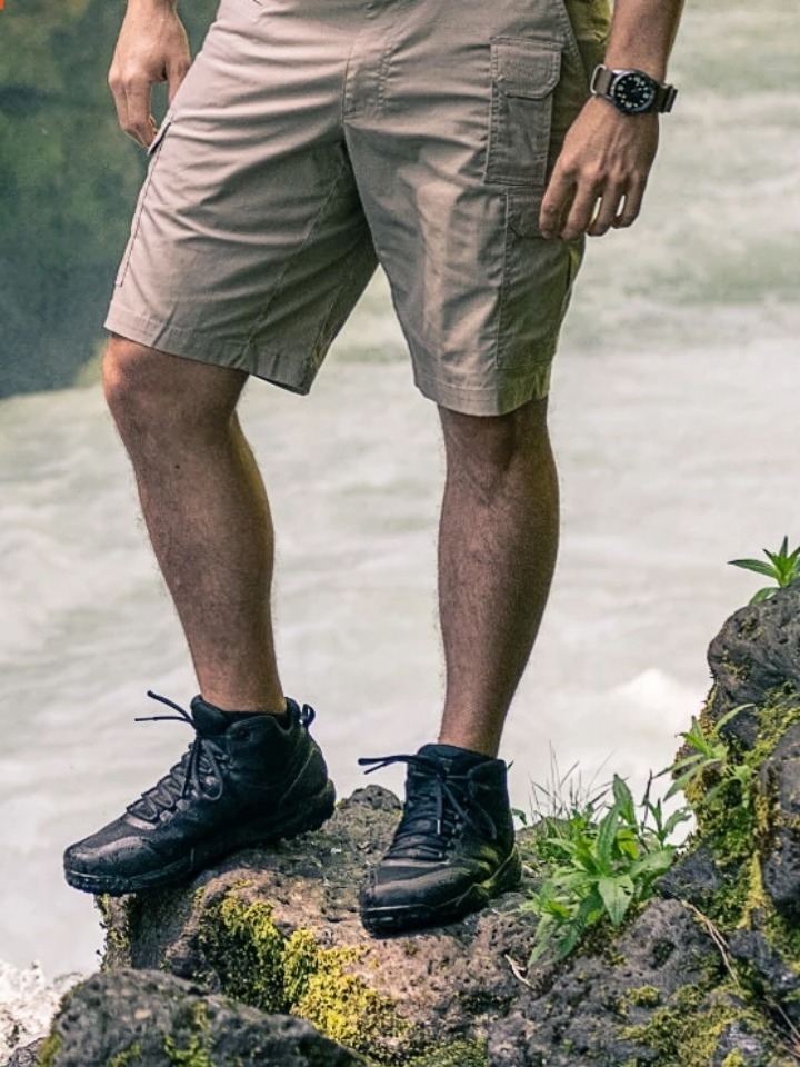 采用多地形花纹设计,提供的舒适性和稳定性,美国户外行寸中帮闪电寸战术靴为提供行动中的速度要求而设计,有利于适应户外多种环境,靴子前掌耳设计。