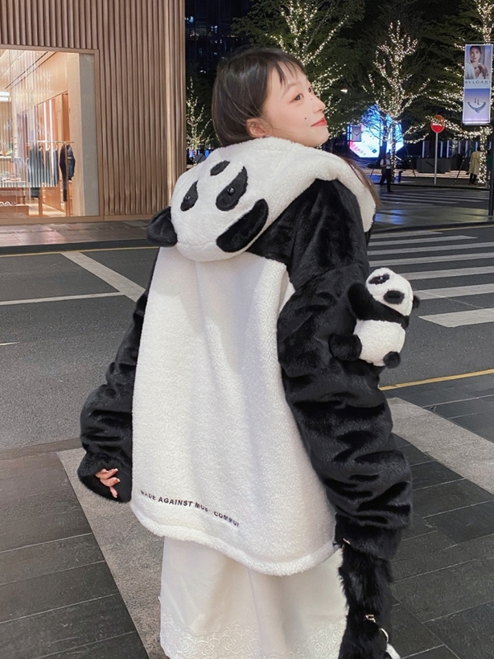 前卫街头感抽离其动物形象并卡通化,刻画和折新生代年人追求与众的生活方式和精神面貌,呼应一侧的品牌字母,胸前点缀经典的熊猫头图案,诞生于本的以熊猫形象为载体。