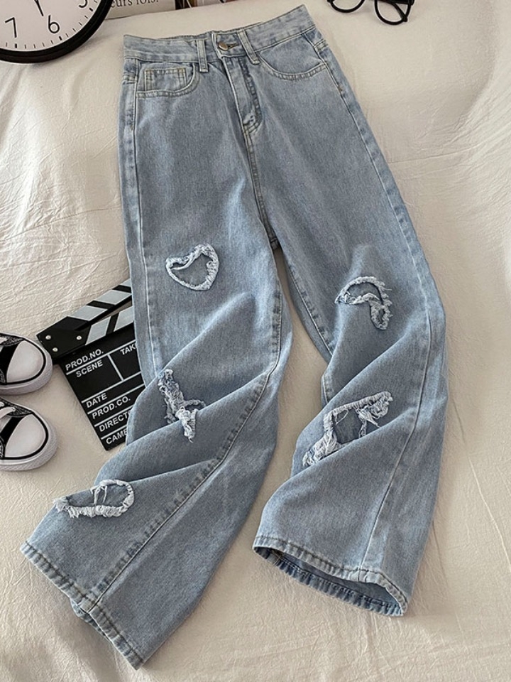 很有高街范儿的一款牛仔裤,水洗蓝的色调,搭配爱心毛须的装点,透露着甜美的气息,穿起来也很显个性。