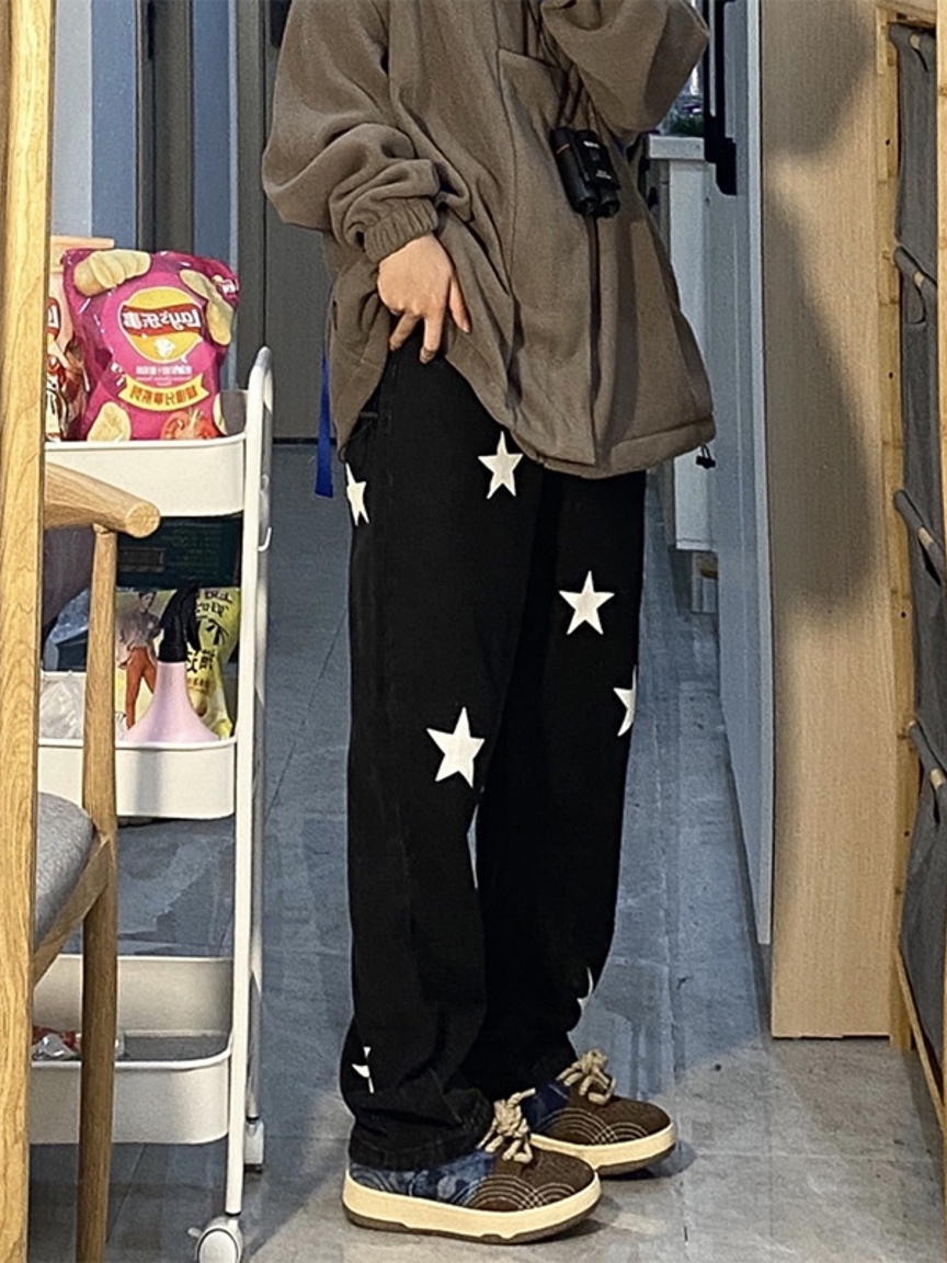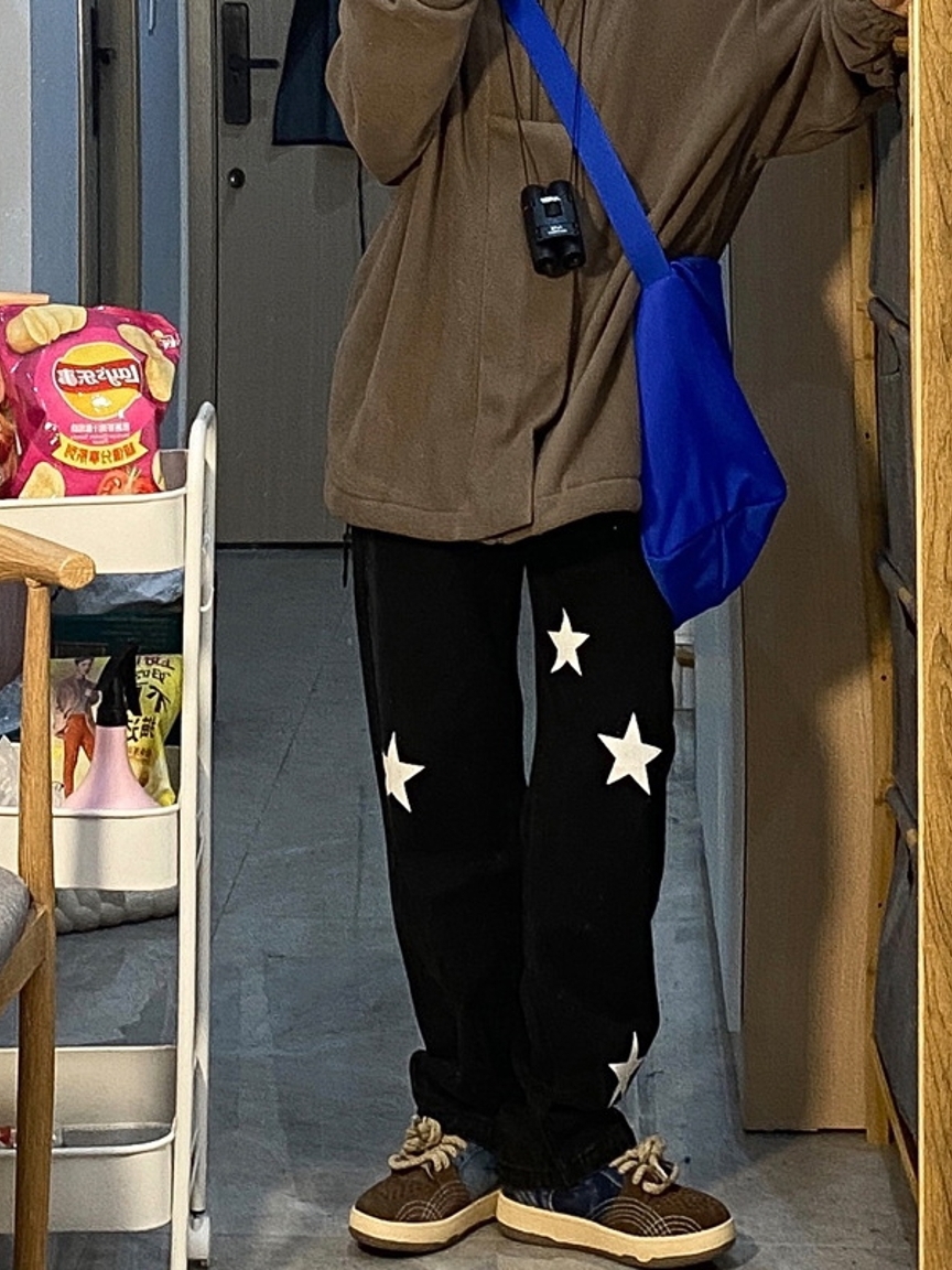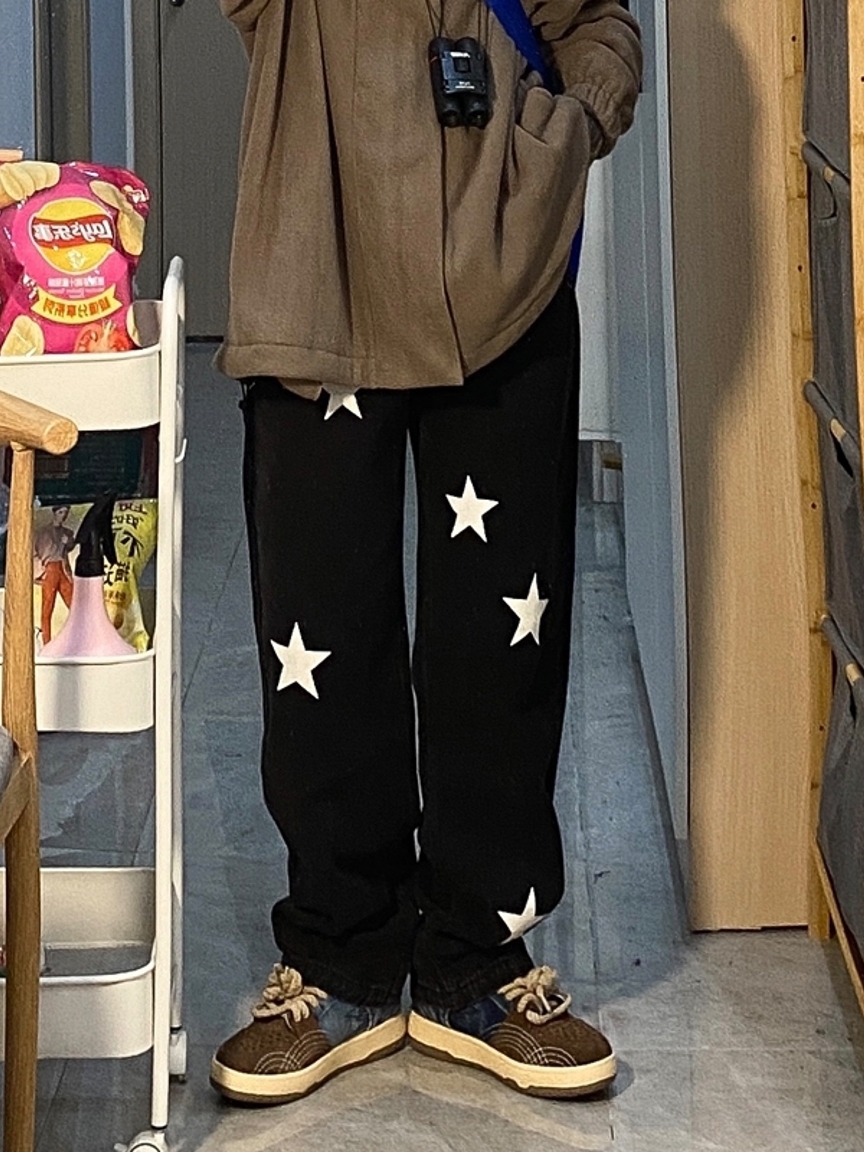 裤身上采用撞色的五角星也很点缀,打破了黑色的平平无奇,瞬间让人眼前一亮,穿在身上很有时尚范儿。