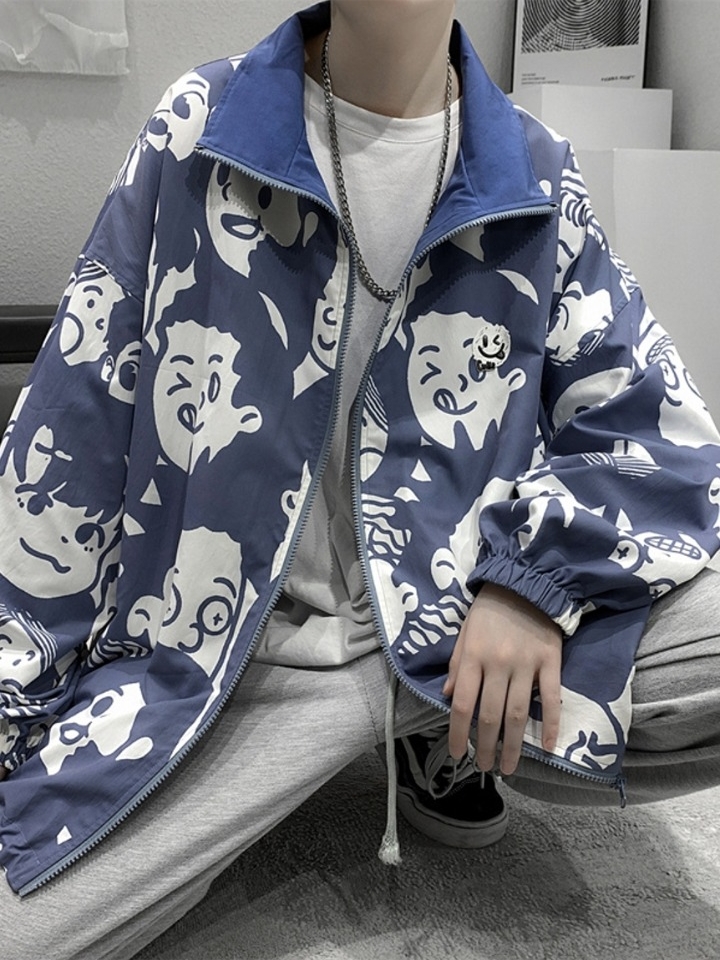 翻领的设计,可变换成立领造型,穿着就能尽显出不一样的帅气与个性,印花图案的点缀,充满趣味性,凸显潮流感的同时更加的吸睛。