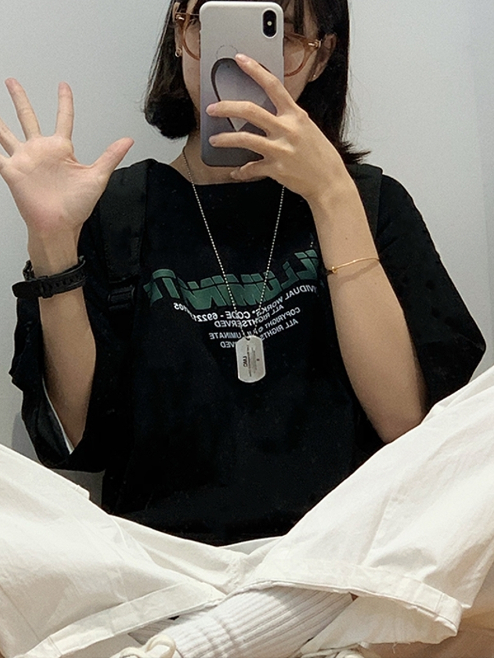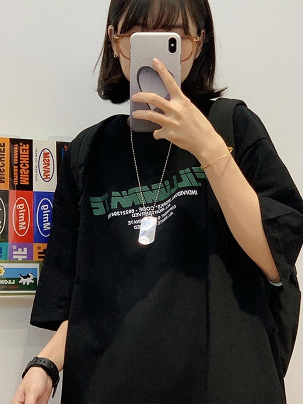 简洁利落的圆形领型设计,有效修饰脸型。肩部剪裁顺畅细腻,穿着挺括有型。衣身港风字母印花设计,醒目出挑,尽情演绎个性前卫Style。面料柔软舒适,穿着亲肤透气。